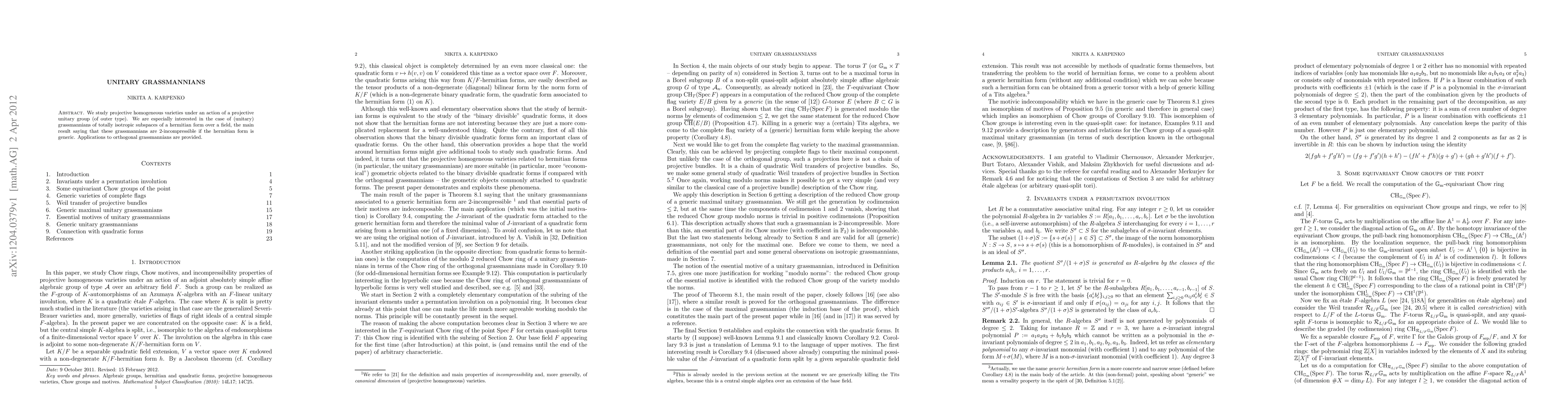 We study projective homogeneous varieties under an action of a projective unitary group (of outer type). We are especially interested in the case of (unitary) grassmannians of totally isotropic subspaces of a hermitian form over a field, the main result saying that these grassmannians are 2-incompressible if the hermitian form is generic. Applications to orthogonal grassmannians are provided.