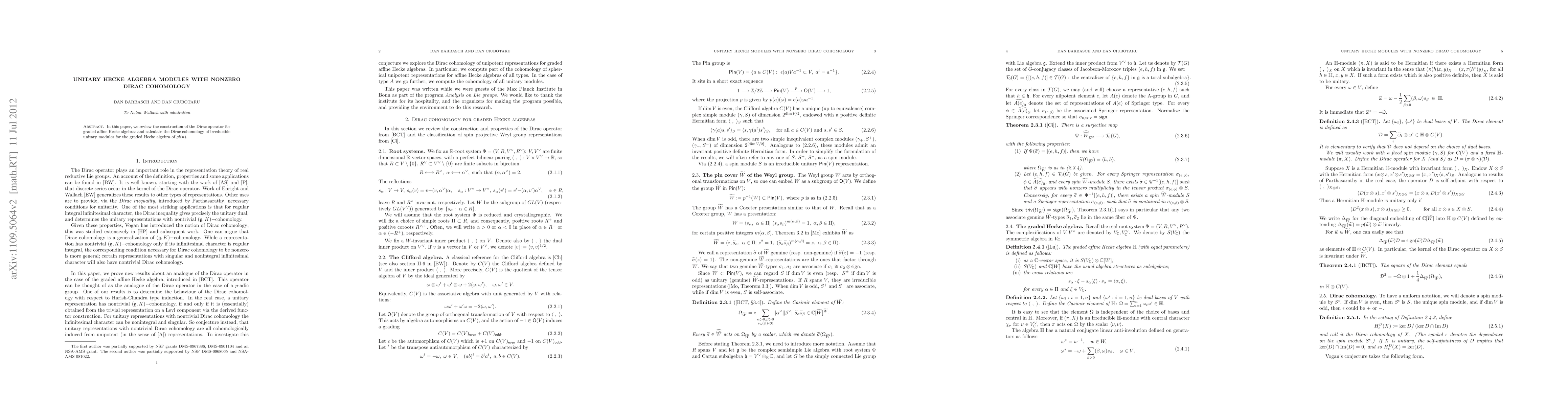 This paper constructs the Dirac operator for graded affine Hecke algebras and computes the Dirac cohomology of irreducible unitary modules for the graded Hecke algebra associated with gl(n), demonstrating nonzero Dirac cohomology for these modules.