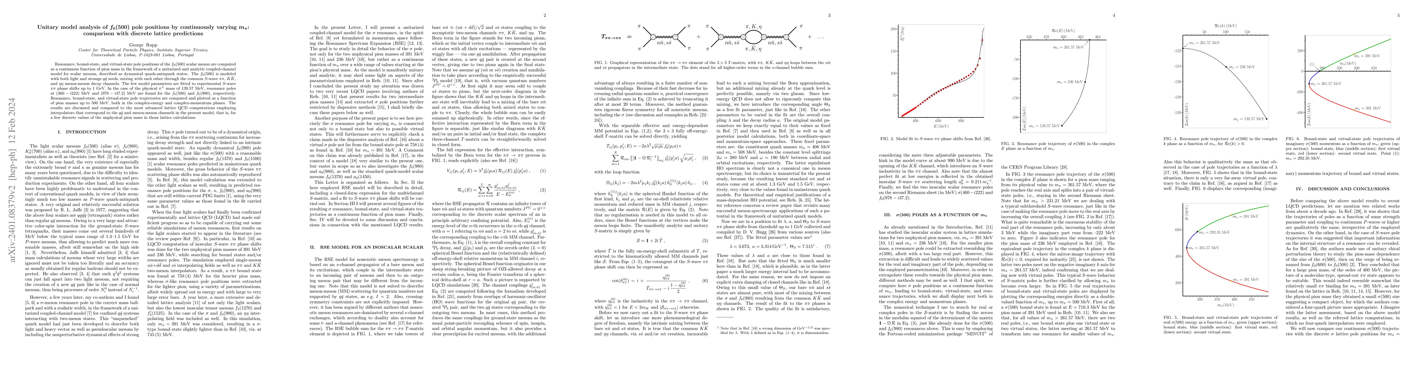This study uses a unitarized coupled-channel model to analyze the $f_0(500)$ scalar meson's pole positions continuously varying the pion mass, finding resonance poles at specific complex energies. The results are compared with advanced lattice QCD predictions for discrete pion masses.