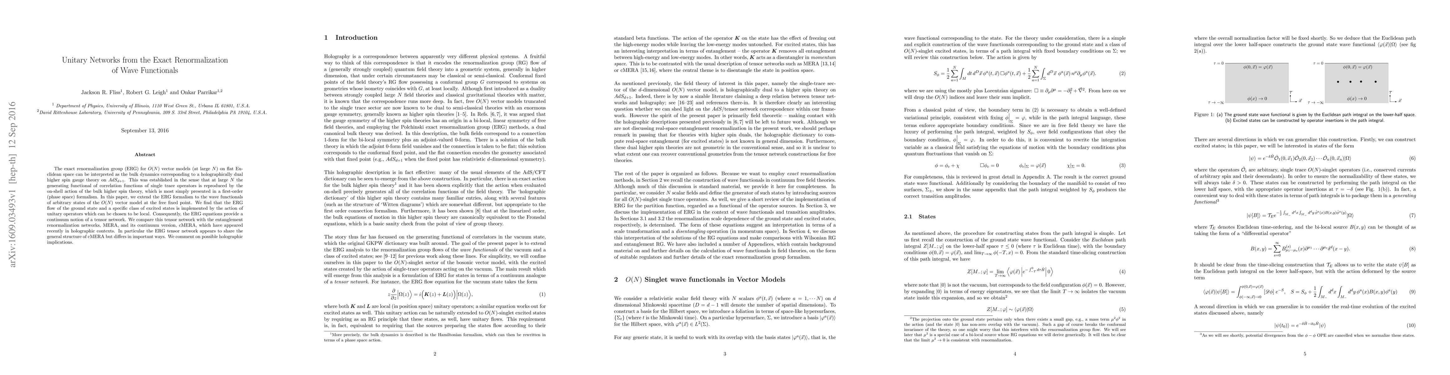 The exact renormalization group (ERG) for $O(N)$ vector models (at large $N$) on flat Euclidean space can be interpreted as the bulk dynamics corresponding to a holographically dual higher spin gauge theory on $AdS_{d+1}$. This was established in the sense that at large $N$ the generating functional of correlation functions of single trace operators is reproduced by the on-shell action of the bulk higher spin theory, which is most simply presented in a first-order (phase space) formalism. In this paper, we extend the ERG formalism to the wave functionals of arbitrary states of the $O(N)$ vector model at the free fixed point. We find that the ERG flow of the ground state and a specific class of excited states is implemented by the action of unitary operators which can be chosen to be local. Consequently, the ERG equations provide a continuum notion of a tensor network. We compare this tensor network with the entanglement renormalization networks, MERA, and its continuum version, cMERA, which have appeared recently in holographic contexts. In particular the ERG tensor network appears to share the general structure of cMERA but differs in important ways. We comment on possible holographic implications.