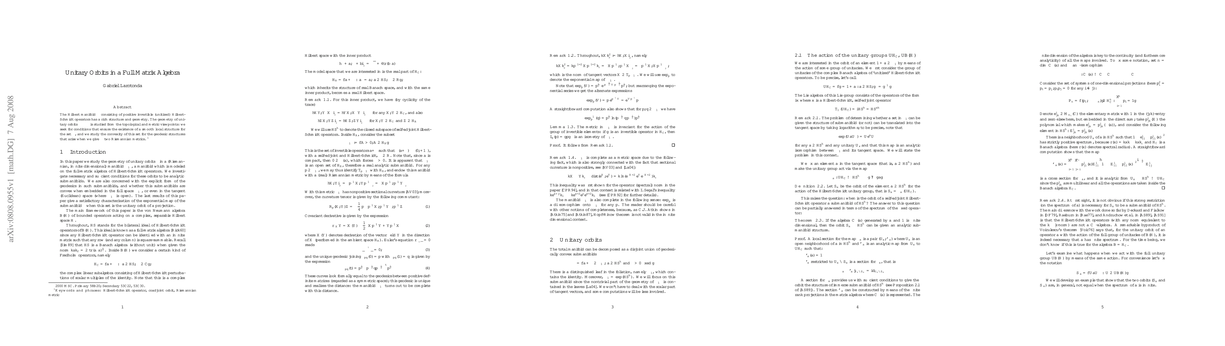 Researchers study the geometry of unitary orbits in a full matrix algebra, seeking conditions for a smooth local structure and convexity of the set, with implications for topological and metric viewpoints.