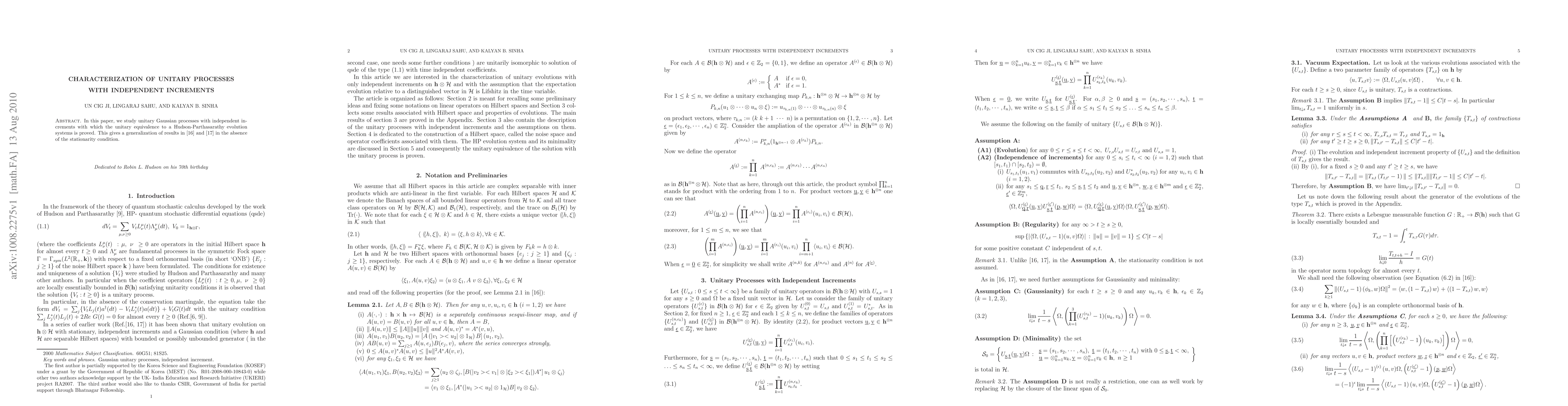 This paper investigates unitary Gaussian processes with independent increments, proving their unitary equivalence to Hudson-Parthasarathy evolution systems, thereby generalizing prior results without requiring the stationarity condition.