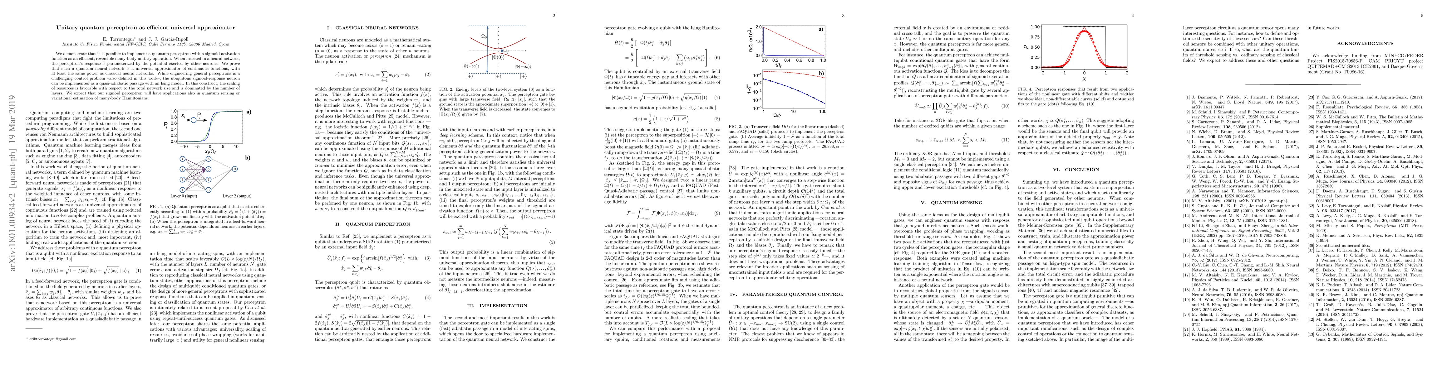 This paper demonstrates that a unitary quantum perceptron with a sigmoid activation function can efficiently function as a reversible many-body operation, proving it to be a universal approximator of continuous functions comparable to classical neural networks. The sigmoid-response neuron can be implemented via quasi-adiabatic passage with an Ising model, showing favorable scaling with respect to network size.