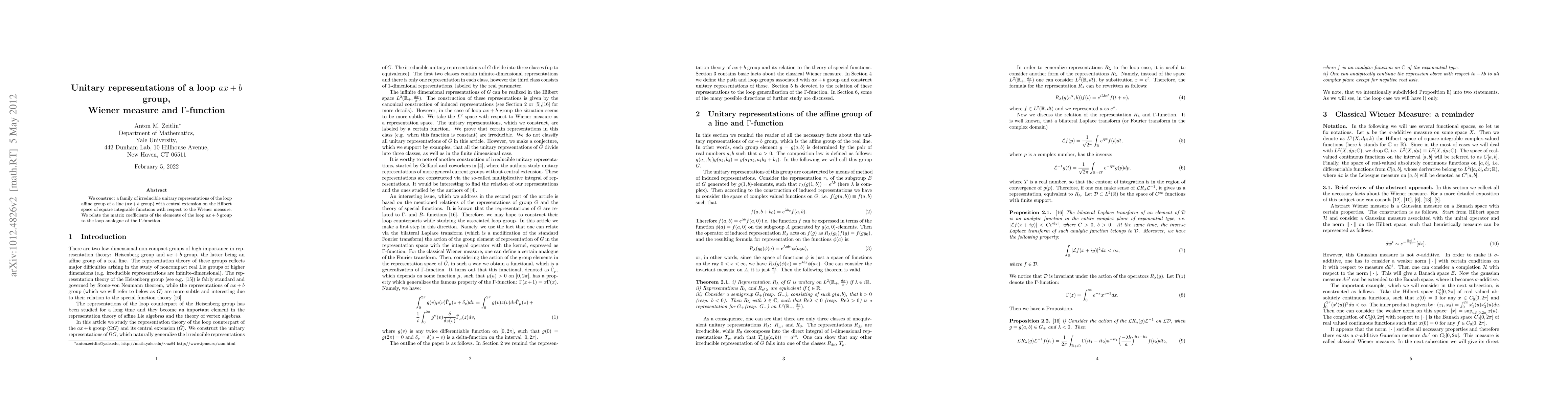 This paper constructs irreducible unitary representations of the loop affine group (ax+b group) on the Hilbert space of square integrable functions defined by Wiener measure, and connects the matrix coefficients of these representations to a loop analogue of the Gamma-function.