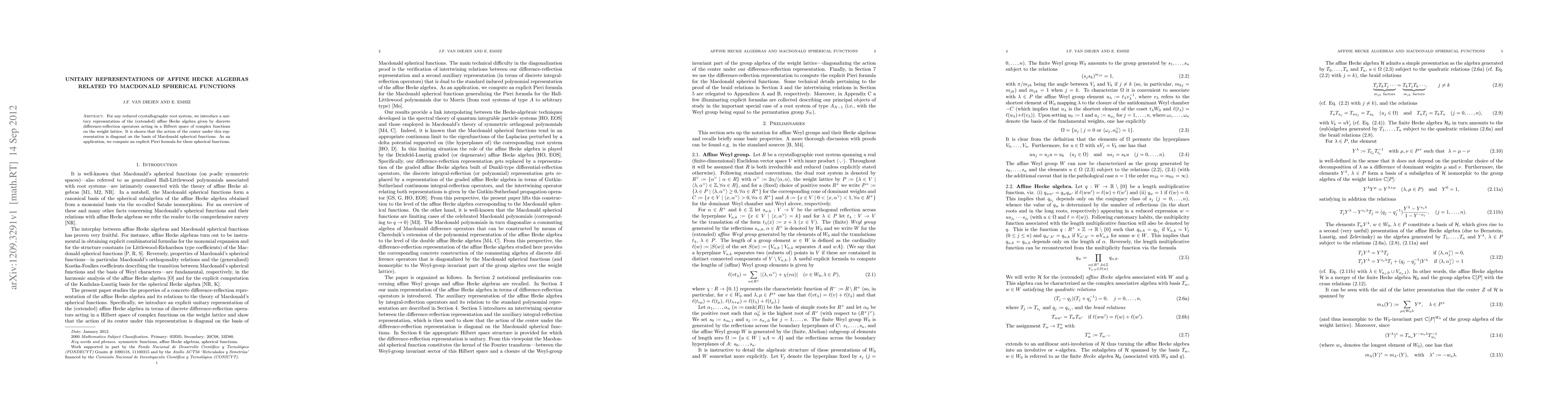 This paper introduces a unitary representation of affine Hecke algebras using discrete difference-reflection operators, showing that the center acts diagonally on Macdonald spherical functions. An explicit Pieri formula for these spherical functions is computed as an application.