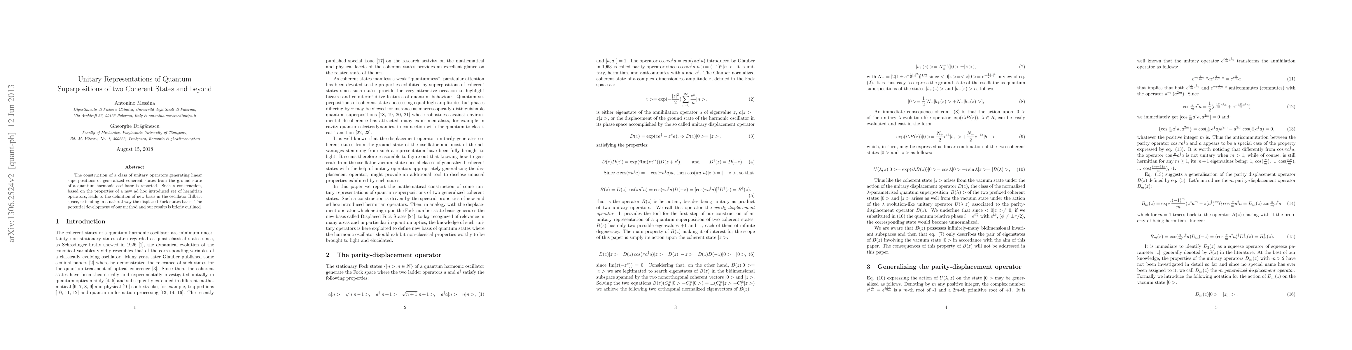 The paper constructs unitary operators that generate linear superpositions of generalized coherent states from the ground state of a quantum harmonic oscillator, introducing a new basis in the oscillator Hilbert space. The potential applications and extensions of this method are briefly discussed.