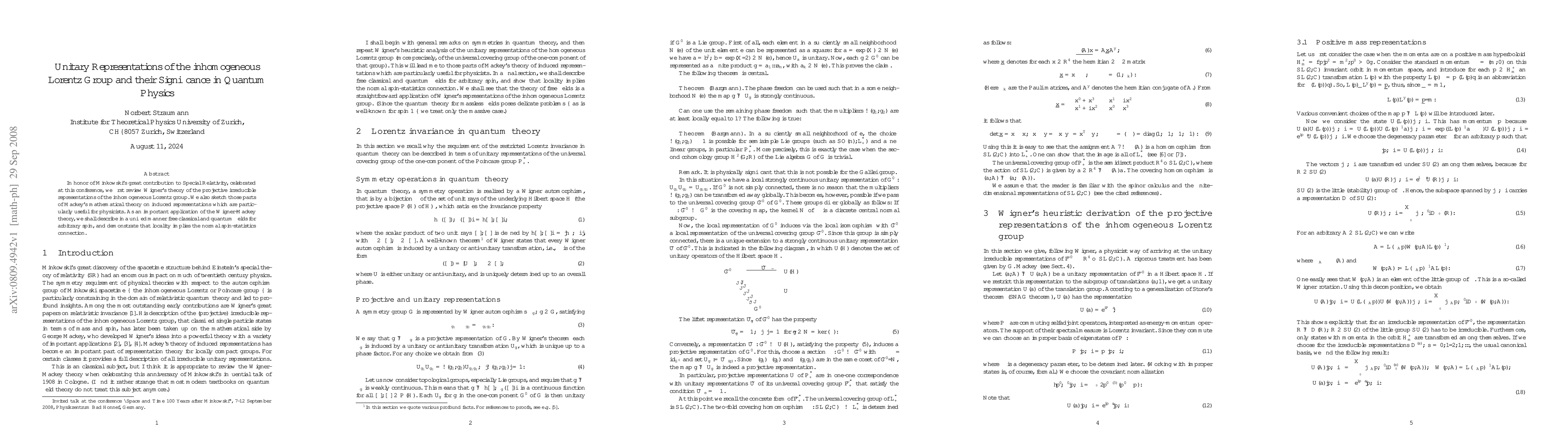 This paper reviews Wigner-Mackey theory for unitary representations of the inhomogeneous Lorentz group, demonstrating its significance in quantum physics and explaining how locality implies spin-statistics connection.