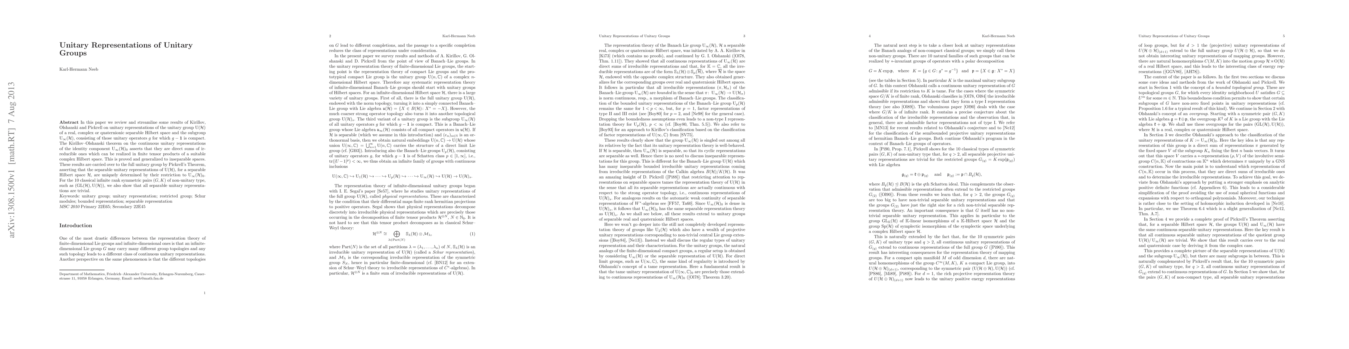 This paper reviews and generalizes results on unitary representations of the unitary group $\U(\cH)$ and its compact perturbation subgroup $\U_\infty(\cH)$, proving that continuous representations of $\U_\infty(\cH)_0$ are direct sums of irreducible ones realized in tensor products of complex Hilbert spaces, and that unitary representations of $\U(\cH)$ are uniquely determined by restrictions to $\U_\infty(\cH)_0$. Additionally, it demonstrates that all separable unitary representations for classical infinite rank symmetric pairs of non-unitary type are trivial.