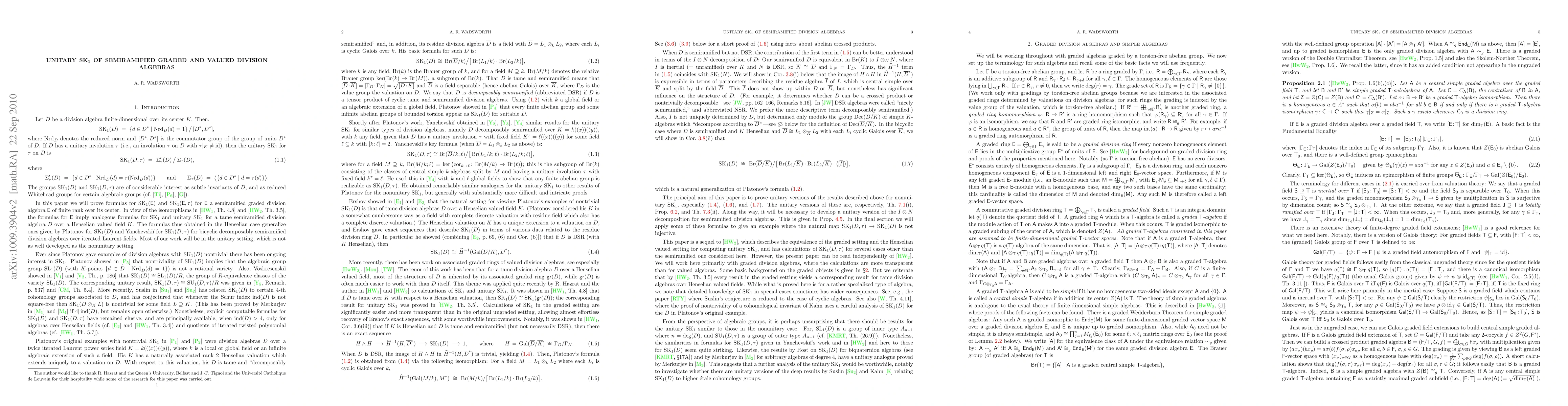This paper establishes new formulas for the unitary SK_1 of semiramified graded division algebras with unitary involution, extending previous results by Yanchevskii and Platonov-Ershov for nonunitary cases. The findings generalize existing theories in the field.