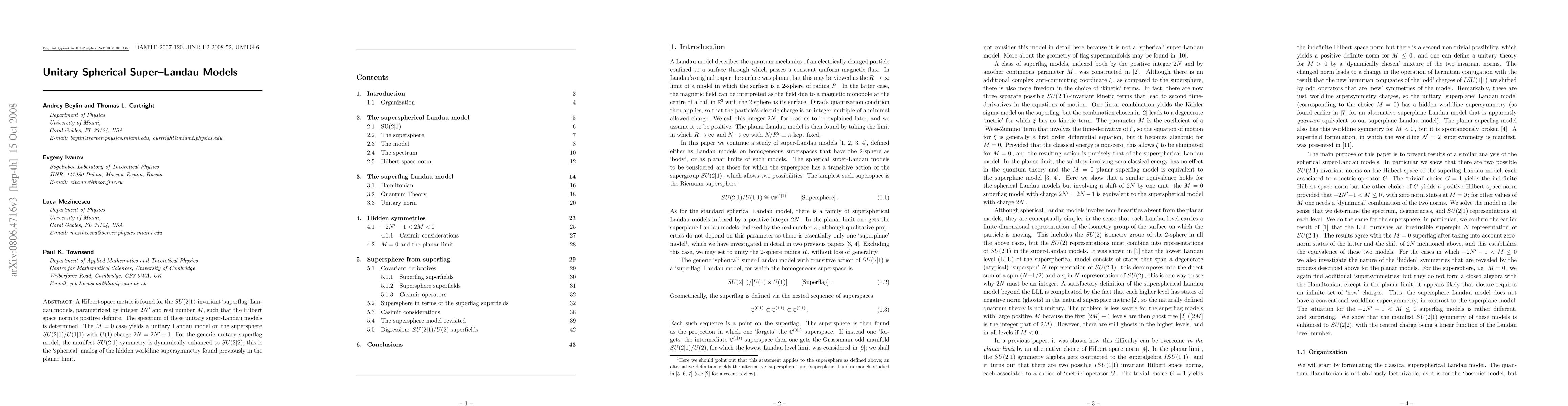 A Hilbert space metric is found for the SU(2|1)-invariant `superflag' Landau models, parametrized by integer 2N' and real number M, such that the Hilbert space norm is positive definite. The spectrum of these unitary super-Landau models is determined. The M=0 case yields a unitary Landau model on the supersphere SU(2|1)/U(1|1) with U(1) charge 2N=2N'+1. For the generic unitary superflag model, the manifest SU(2|1) symmetry is dynamically enhanced to SU(2|2); this is the `spherical' analog of the hidden worldline supersymmetry found previously in the planar limit.