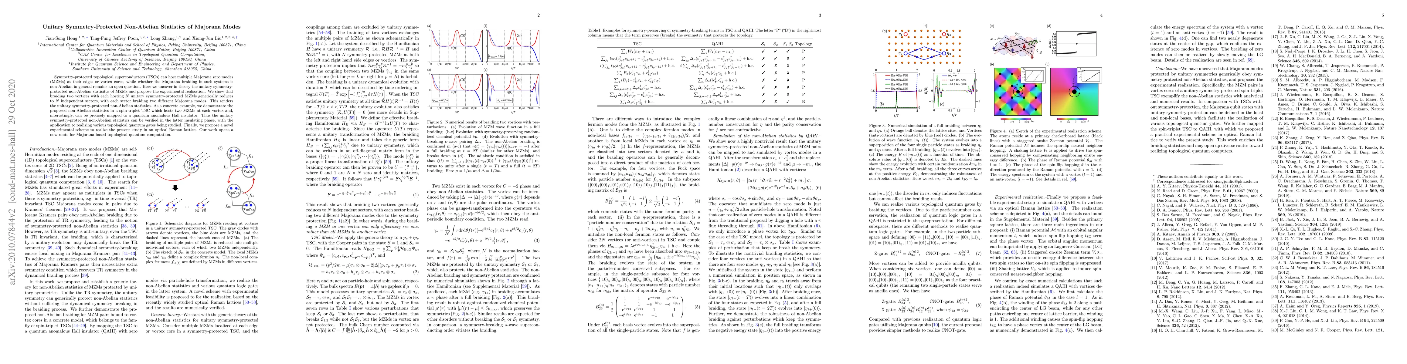 This paper theoretically uncovers unitary symmetry-protected non-Abelian statistics in Majorana zero modes (MZMs) within symmetry-protected topological superconductors (TSCs), proposing their realization in a spin-triplet TSC and a novel optical Raman lattice. The study highlights the potential for topological quantum gates and quantum computation.