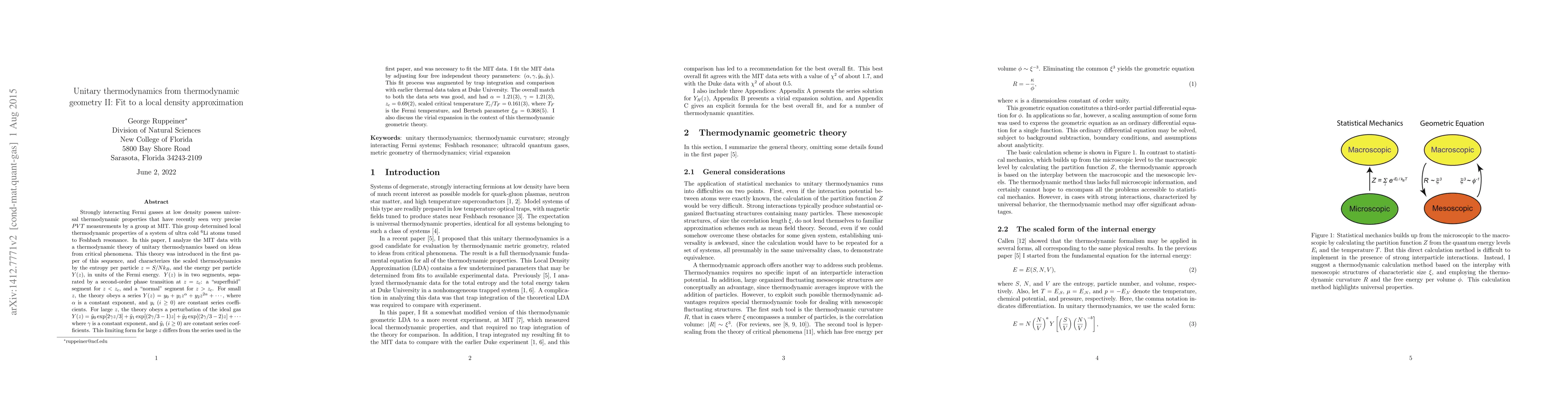 unitary thermodynamics based on ideas from critical phenomena. This theory was