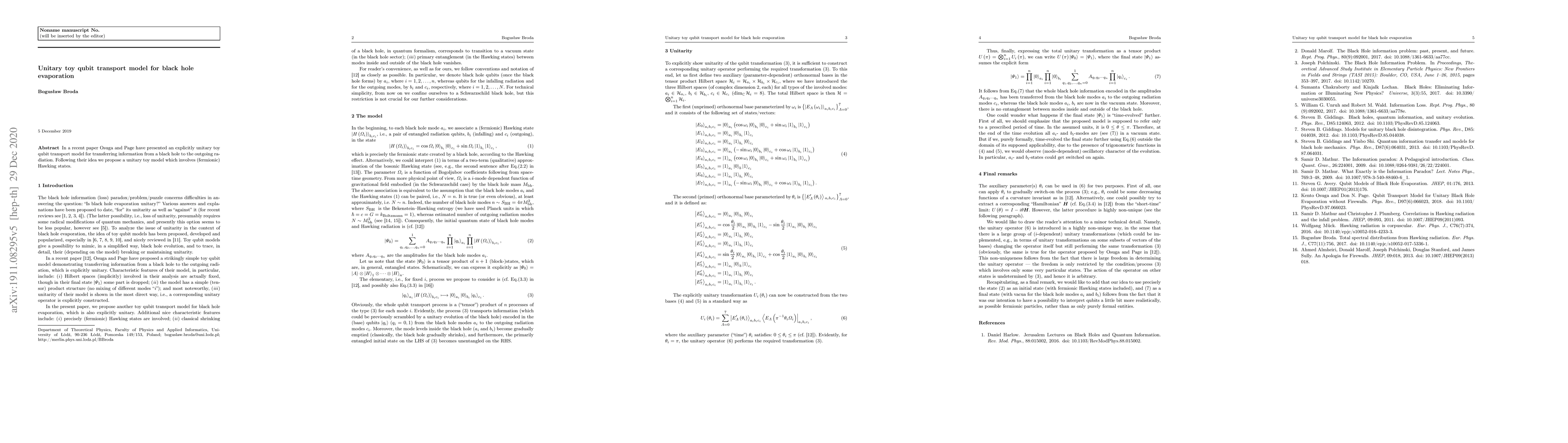 This paper proposes a unitary toy model for black hole evaporation that involves fermionic Hawking states, extending the work of Osuga and Page on qubit transport to explicitly unitary processes. The model aims to transfer information from a black hole to outgoing radiation in a unitary manner.