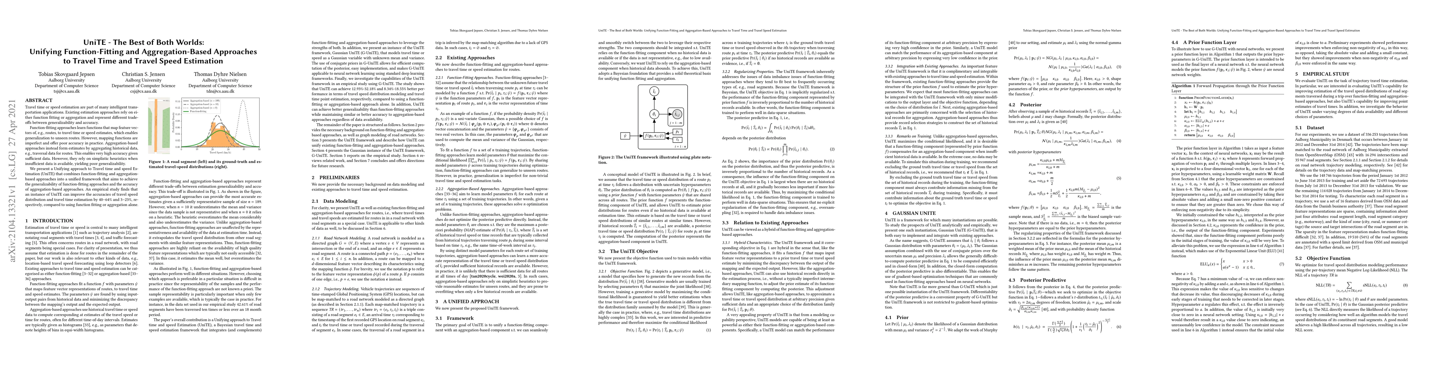 UniTE combines function-fitting and aggregation-based approaches for improved travel time and speed estimation, achieving higher accuracy and better generalizability compared to using either method alone. Empirical results show significant improvements in accuracy, up to 64% for travel speed and 23% for travel time.