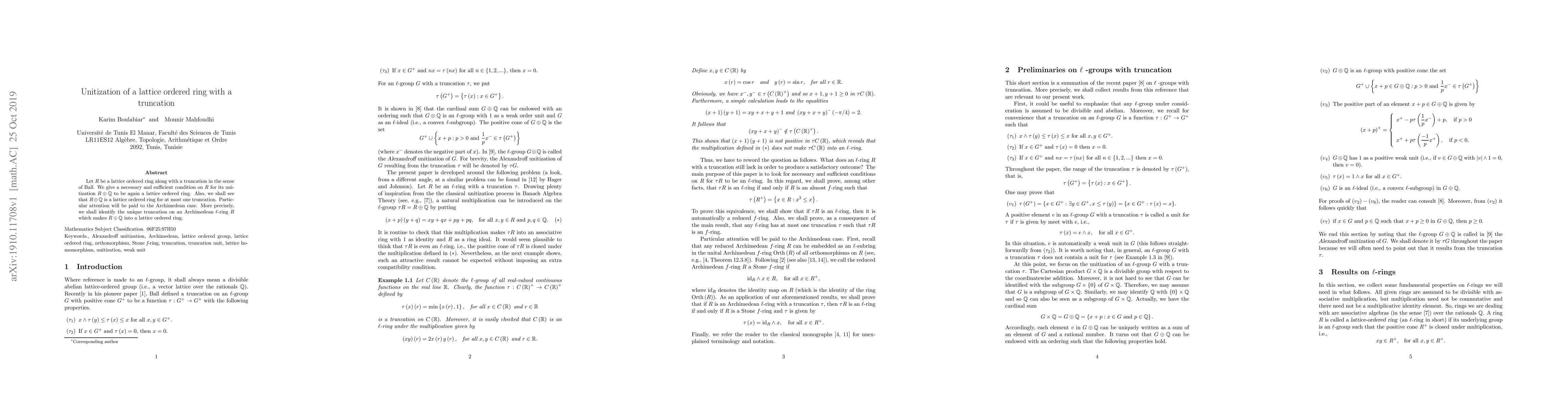 A lattice ordered ring with a truncation can be unitized into another lattice ordered ring under specific conditions, primarily focusing on the Archimedean case where there is a unique truncation that makes the unitization a lattice ordered ring.