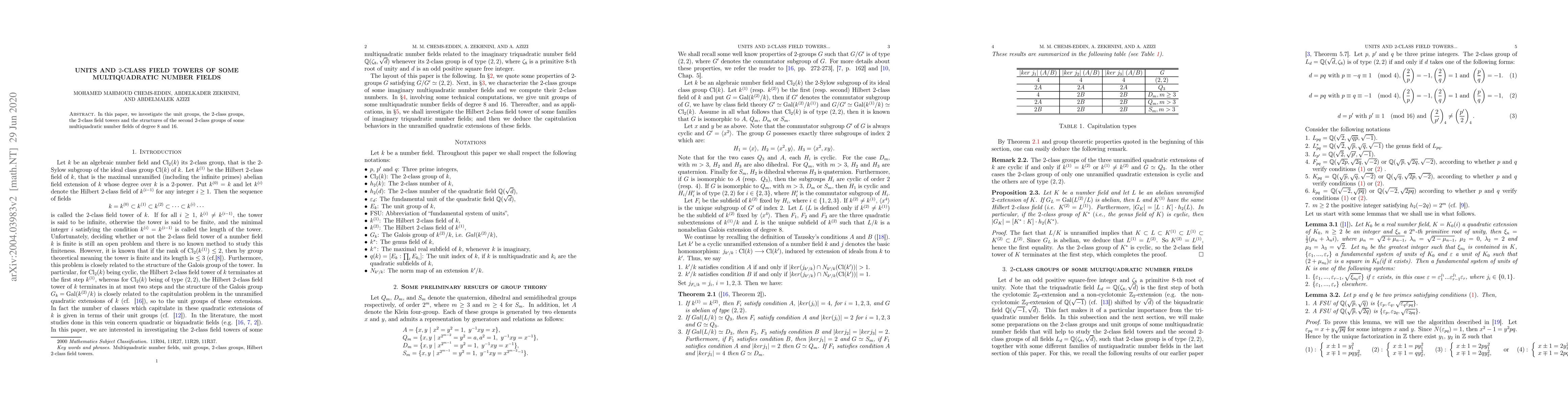 This paper examines the unit groups, 2-class groups, and 2-class field towers, specifically focusing on the structures of the second 2-class groups, for certain multiquadratic number fields of degrees 8 and 16.
