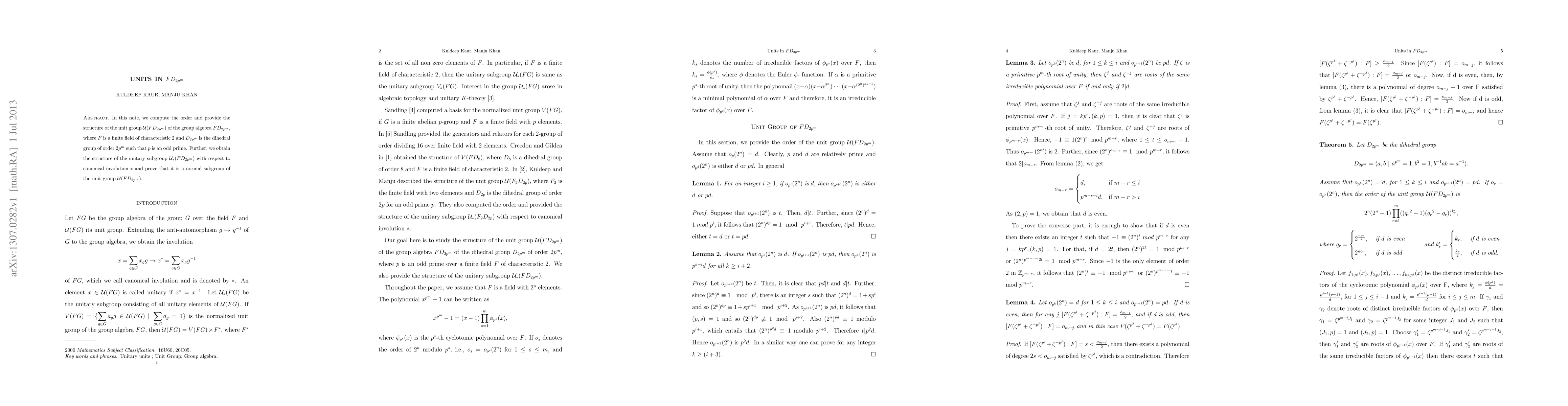 In this note, we compute the order and provide the structure of the unit group $\mathcal{U}(FD_{2p^m})$ of the group algebra $FD_{2p^m}$, where $F$ is a finite field of characteristic 2 and $D_{2p^m}$ is the dihedral group of order $2p^m$ such that $p$ is an odd prime. Further, we obtain the structure of the unitary subgroup $\mathcal{U}_*(FD_{2p^m})$ with respect to canonical involution * and prove that it is a normal subgroup of the unit group $\mathcal{U}(FD_{2p^m})$.