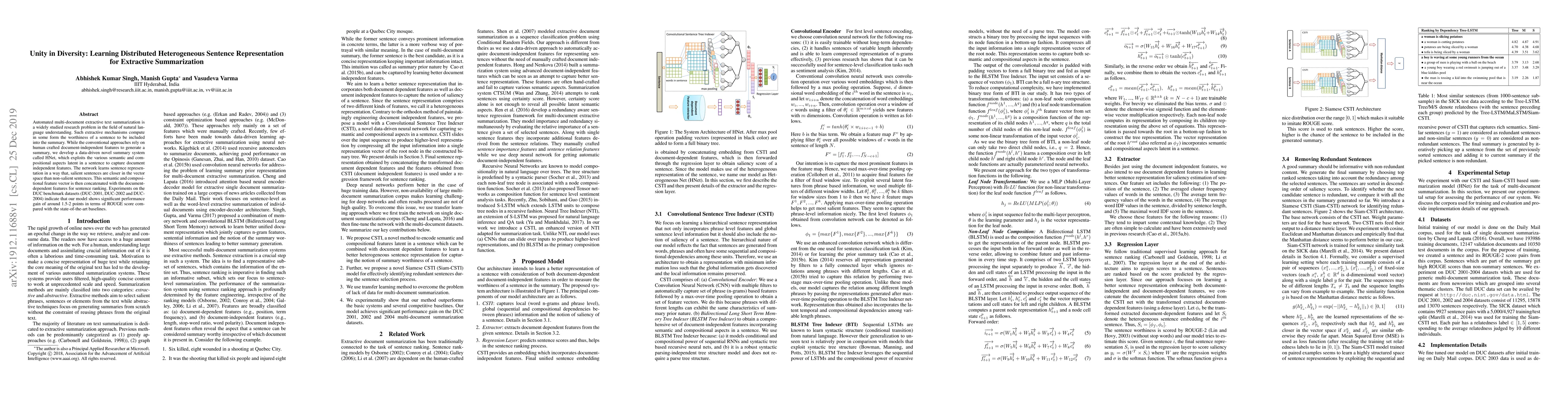 This paper introduces HNet, a novel data-driven system for multi-document extractive summarization that leverages semantic and compositional sentence features to generate summaries. The model outperforms state-of-the-art baselines by achieving a 1.5-2 point improvement in ROUGE score on DUC datasets.