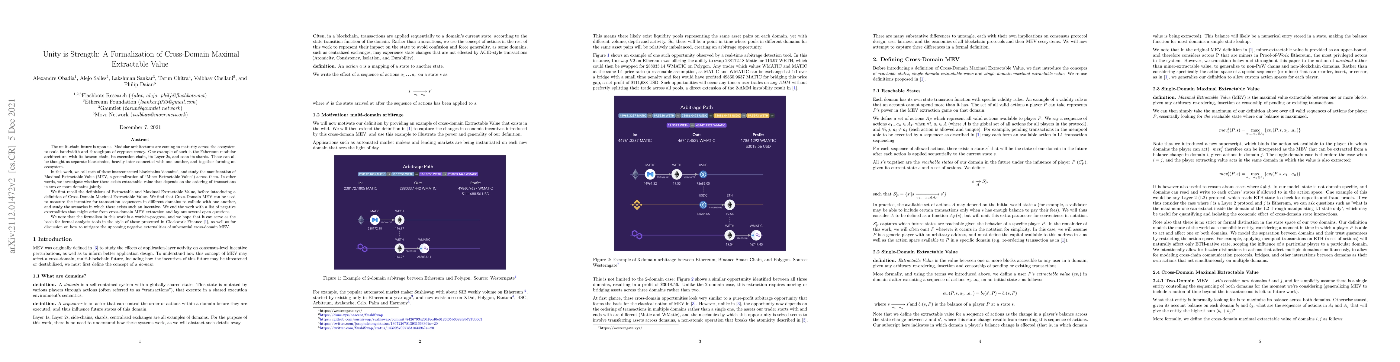 The multi-chain future is upon us. Modular architectures are coming to maturity across the ecosystem to scale bandwidth and throughput of cryptocurrency. One example of such is the Ethereum modular architecture, with its beacon chain, its execution chain, its Layer 2s, and soon its shards. These can all be thought as separate blockchains, heavily inter-connected with one another, and together forming an ecosystem. In this work, we call each of these interconnected blockchains "domains", and study the manifestation of Maximal Extractable Value (MEV, a generalization of "Miner Extractable Value") across them. In other words, we investigate whether there exists extractable value that depends on the ordering of transactions in two or more domains jointly. We first recall the definitions of Extractable and Maximal Extractable Value, before introducing a definition of Cross-Domain Maximal Extractable Value. We find that Cross-Domain MEV can be used to measure the incentive for transaction sequencers in different domains to collude with one another, and study the scenarios in which there exists such an incentive. We end the work with a list of negative externalities that might arise from cross-domain MEV extraction and lay out several open questions. We note that the formalism in this work is a work in progress, and we hope that it can serve as the basis for formal analysis tools in the style of those presented in Clockwork Finance, as well as for discussion on how to mitigate the upcoming negative externalities of substantial cross-domain MEV.