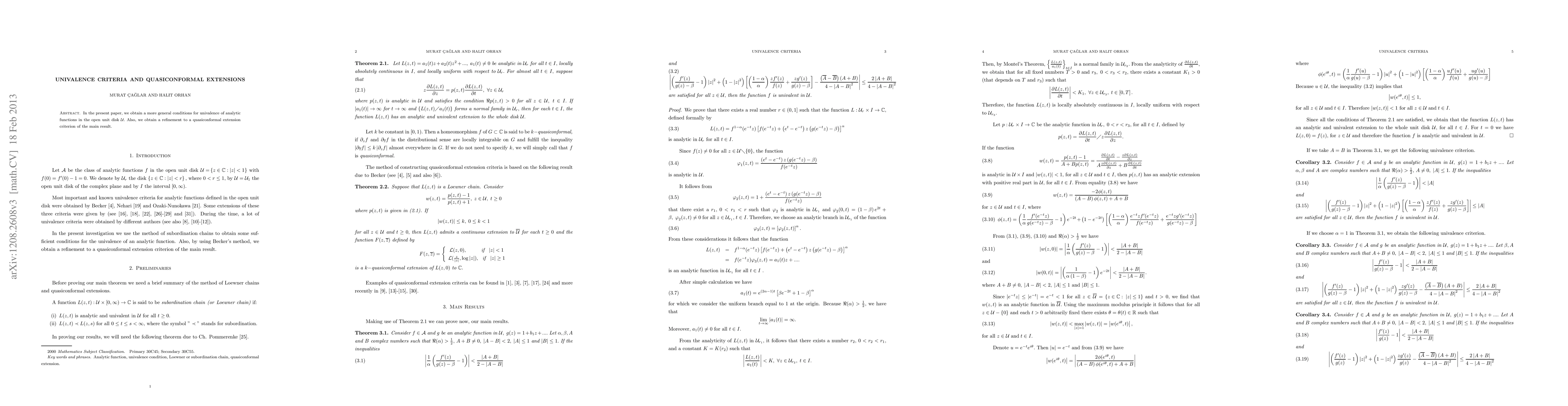 This paper refines conditions for univalence of analytic functions in the open unit disk U and provides a quasiconformal extension criterion.