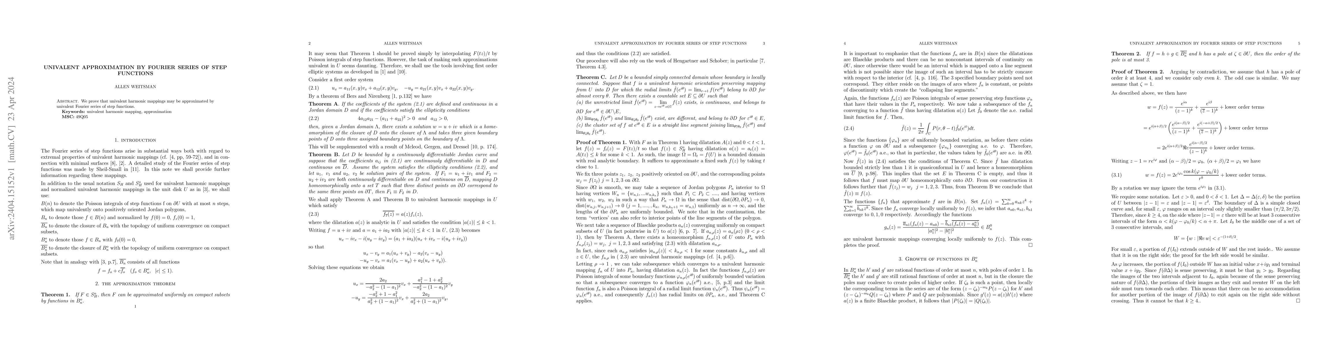 This paper demonstrates that univalent harmonic mappings can be approximated using univalent Fourier series constructed from step functions. The study provides a theoretical framework for this approximation method.
