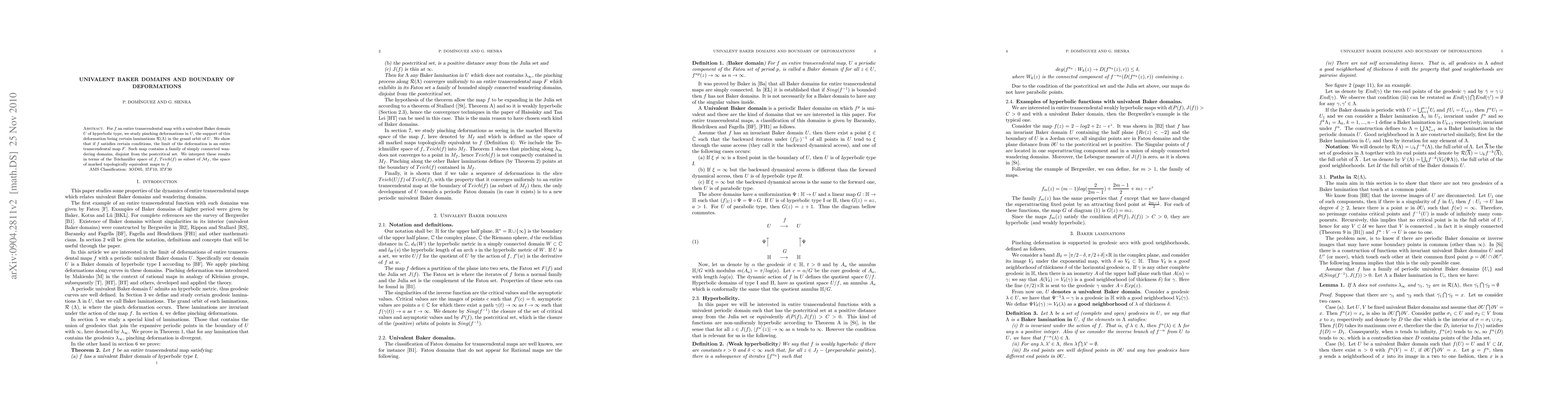 For $f$ an entire transcendental map with a univalent Baker domain $U$ of hyperbolic type I, we study pinching deformations in $U$, the support of this deformation being certain laminations in the grand orbit of $U$. We show that pinching along a lamination that contains the geodesic $\lambda_{\infty}$ (See Section 3.1) does not converges. However, pinching at a lamination that does not contains such $\lambda_{\infty}$, converges and converges to a unique map $F$ if: the Julia set of $f$, $J(f)$ is connected, the postcritical set of $f$ is a positive (plane) distance away from $J(f)$, and it is thin at $\infty$. We show that $F$ has a simply connected wandering domain that stays away from the postcritical set. We interpret these results in terms of the Teichm\"uller space of $f$, $Teich(f)$, included in $M_{f}$ the marked space of topologically equivalent maps to $f$.