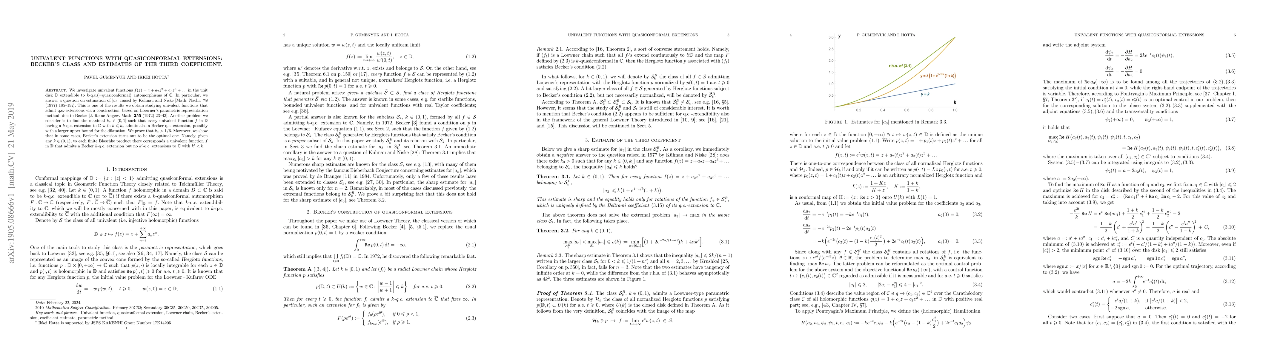This research paper investigates univalent functions with quasiconformal extensions, focusing on Becker's class and estimating the third coefficient, with key findings including a maximal value for k-q.c. extensions and an optimal extension in some cases.