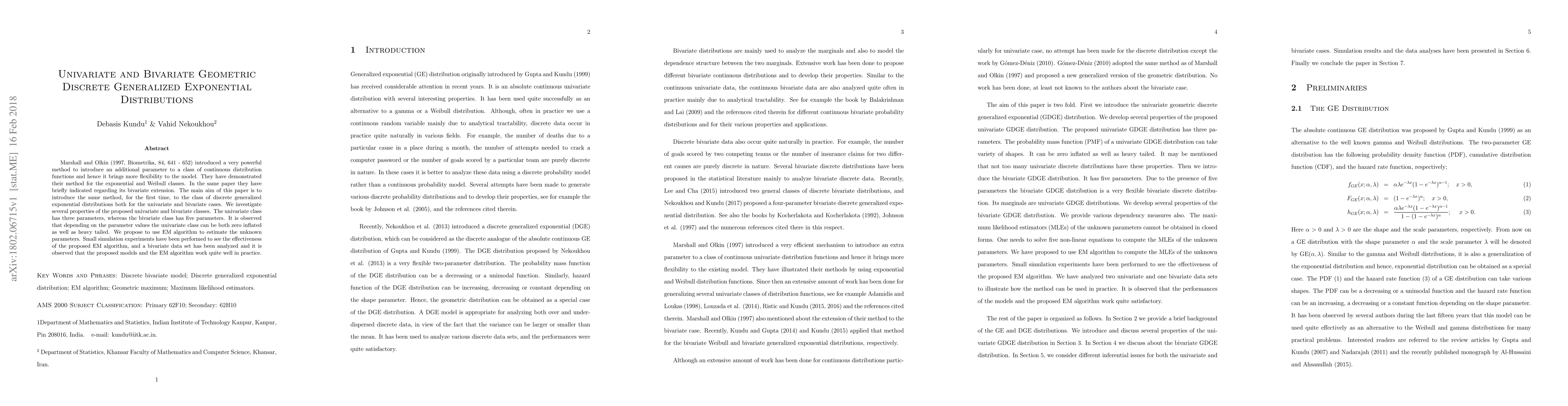 This paper extends Marshall and Olkin's method for introducing an additional parameter to continuous distributions to the class of discrete generalized exponential distributions, both univariate and bivariate. The proposed models exhibit flexibility, including zero inflation and heavy tails, and are estimated using the EM algorithm, with successful application demonstrated through simulations and analysis of a bivariate dataset.