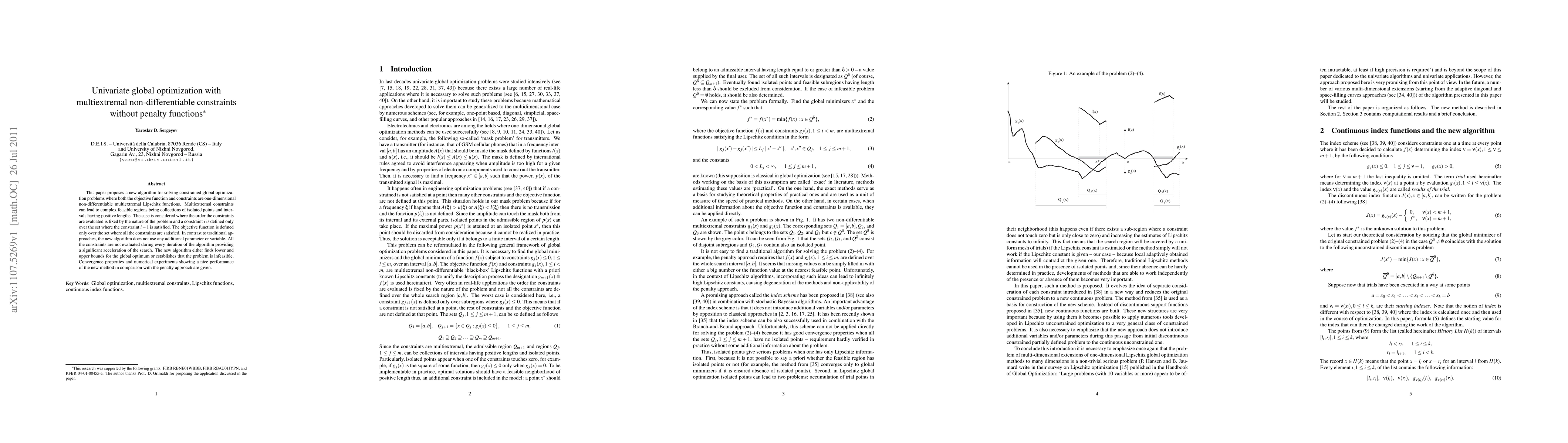 This paper introduces a novel algorithm for solving global optimization problems with non-differentiable, multiextremal constraints without employing penalty functions. The algorithm efficiently navigates complex feasible regions and avoids evaluating all constraints in each iteration, leading to faster convergence and better performance compared to traditional penalty-based methods.