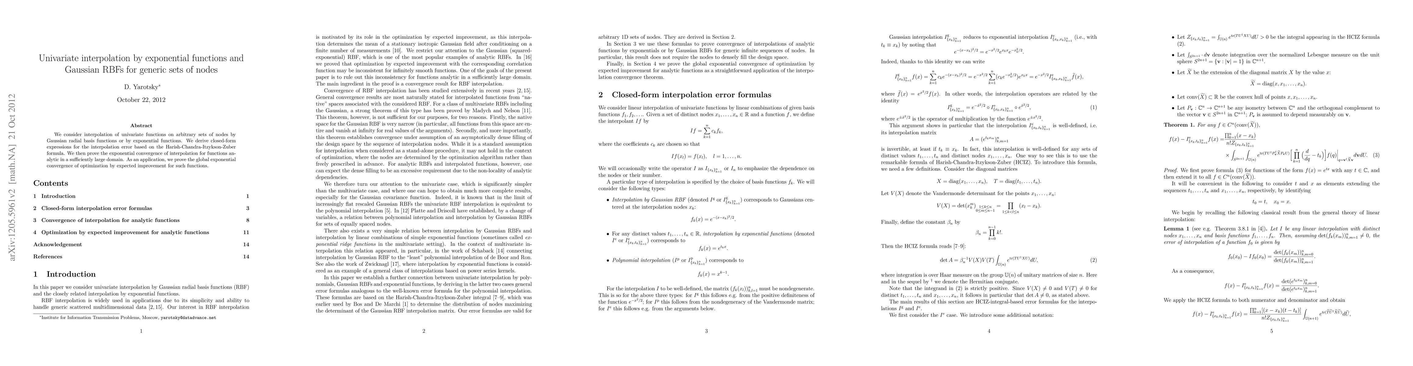 Researchers developed a method for univariate function interpolation using Gaussian radial basis functions and exponential functions, showing exponential convergence for analytic functions in large domains.