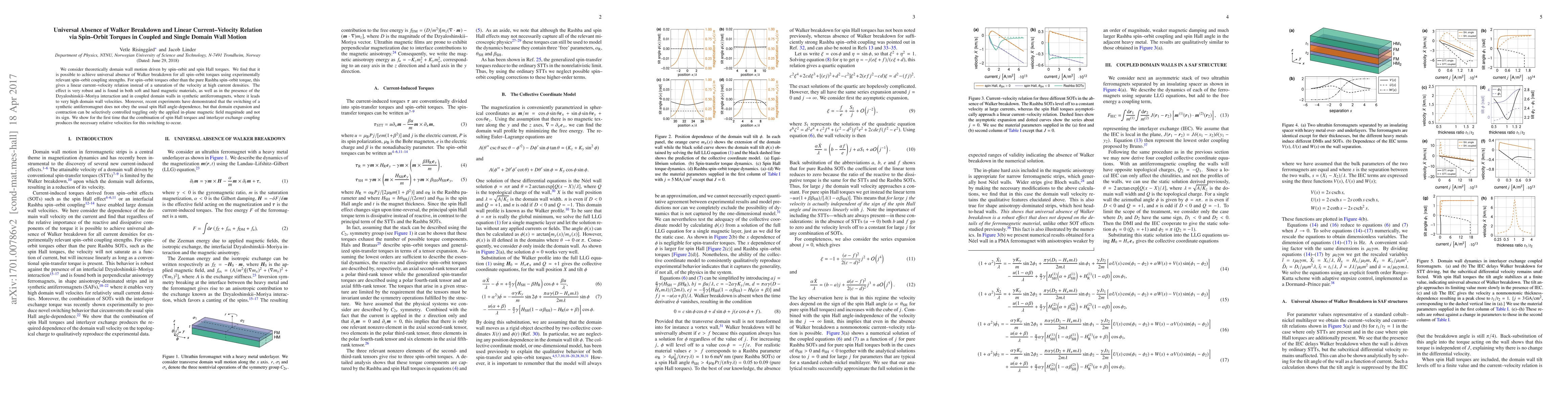 This research demonstrates theoretically that spin-orbit torques can universally prevent Walker breakdown in domain wall motion, resulting in a linear current-velocity relation across various magnetic materials. This robust effect also facilitates high domain wall velocities and selective switching of synthetic antiferromagnets by controlling the applied magnetic field magnitude.