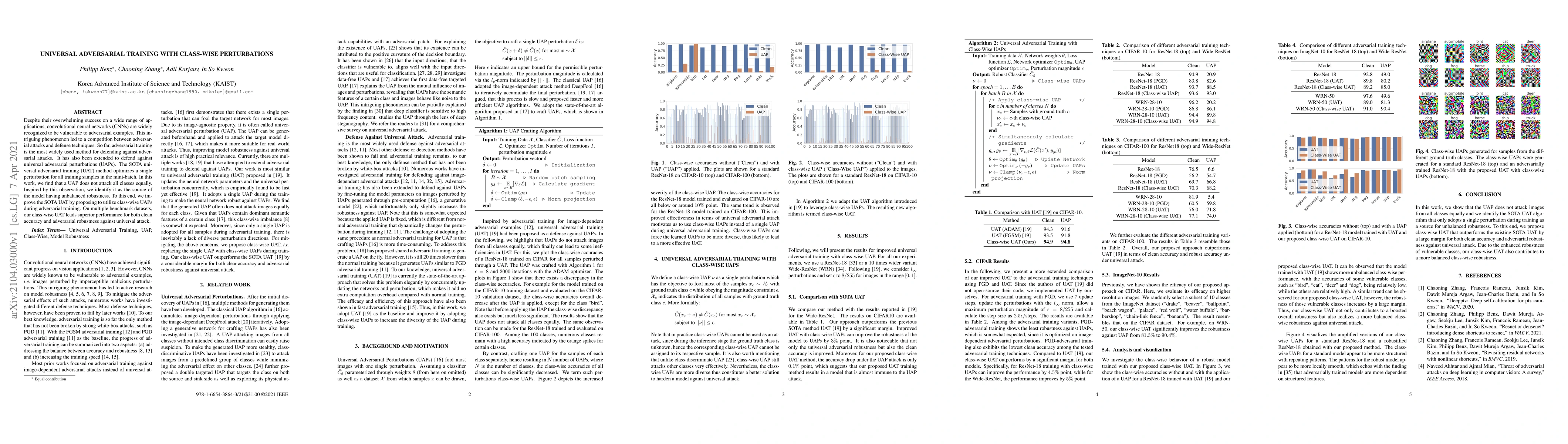 This paper proposes a novel universal adversarial training method using class-wise perturbations to improve model robustness against universal adversarial attacks. The class-wise approach addresses the unbalanced robustness issue, resulting in superior clean accuracy and adversarial robustness compared to existing methods.