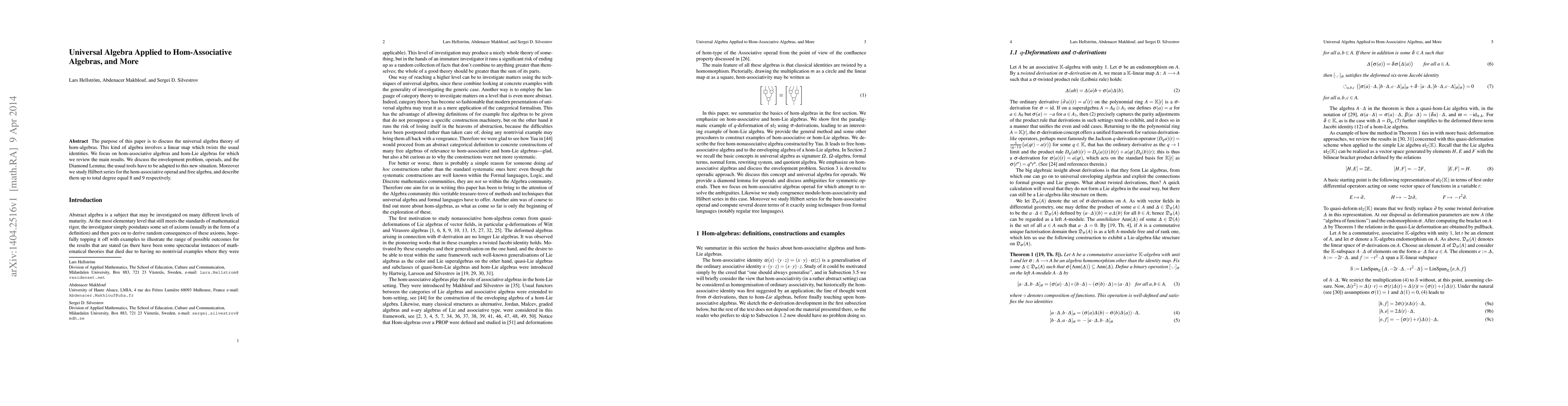 This paper explores universal algebra in the context of hom-associative and hom-Lie algebras, adapting traditional tools like operads and the Diamond Lemma to accommodate twisted identities. It also investigates Hilbert series for the hom-associative operad and free algebra up to total degree 9.