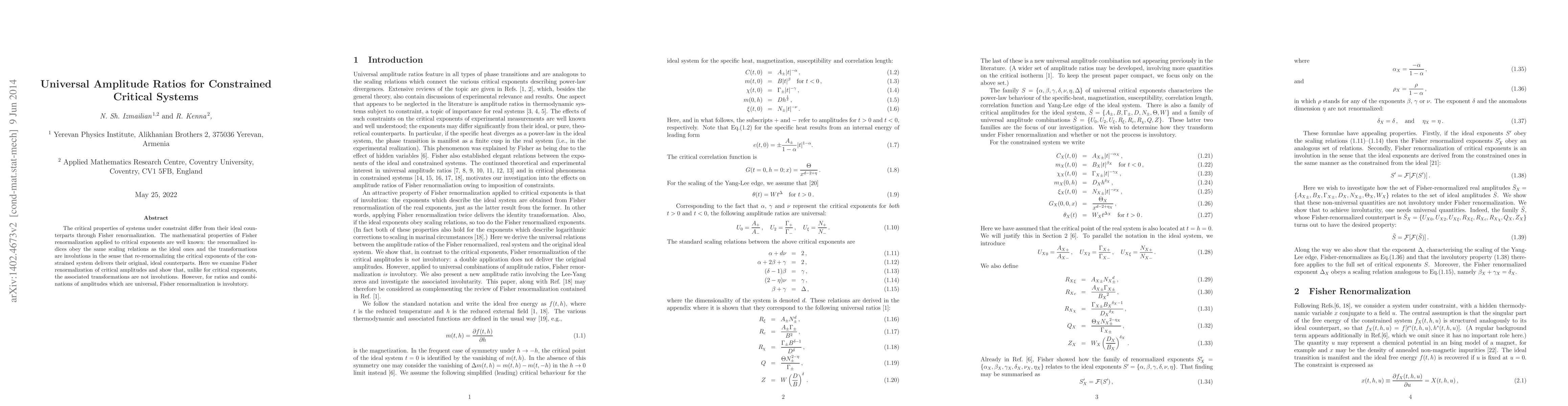 The research investigates how critical amplitudes transform under Fisher renormalization for systems under constraint, contrasting with the involutory transformation of critical exponents.