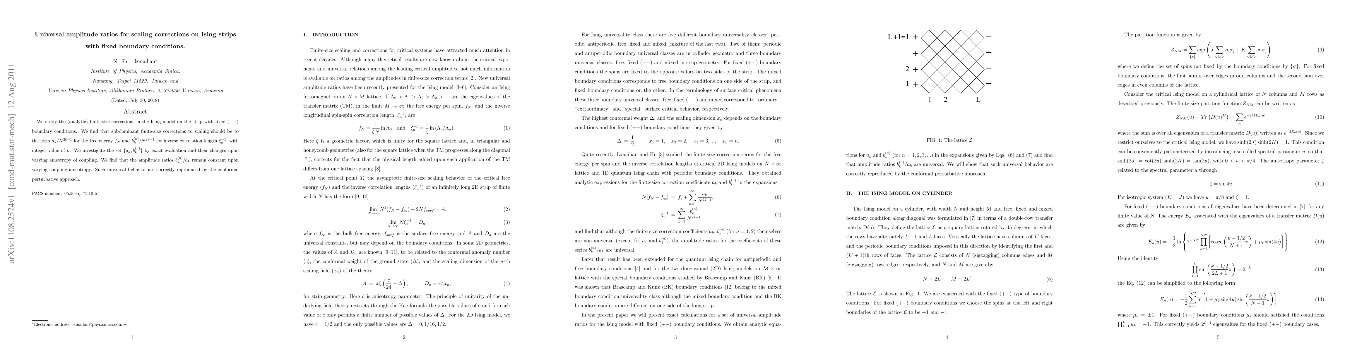 This paper investigates finite-size scaling corrections in the Ising model on strips with fixed boundary conditions, finding universal amplitude ratios for subdominant corrections. The study reveals that the amplitude ratios remain constant regardless of coupling anisotropy, a behavior accurately captured by conformal perturbative methods.