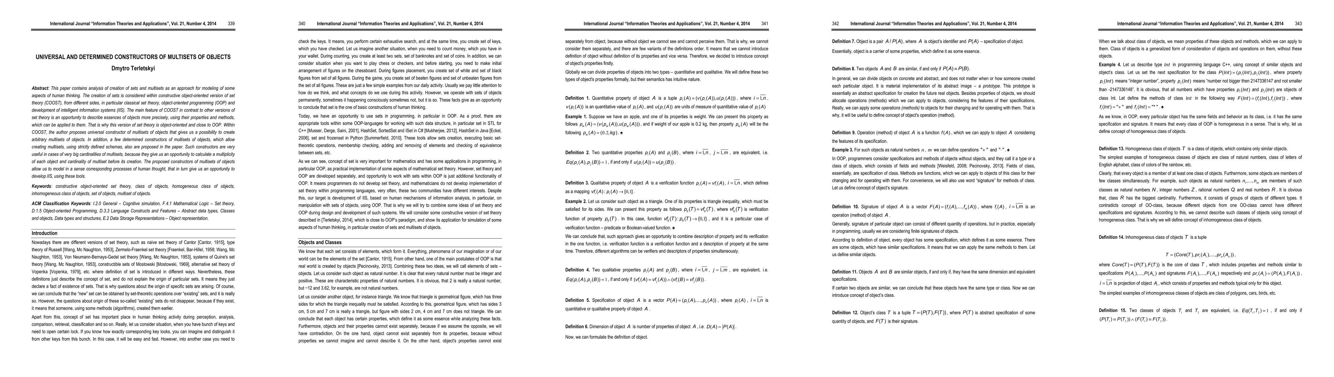 This paper contains analysis of creation of sets and multisets as an approach for modeling of some aspects of human thinking. The creation of sets is considered within constructive object-oriented version of set theory (COOST), from different sides, in particular classical set theory, object-oriented programming (OOP) and development of intelligent information systems (IIS). The main feature of COOST in contrast to other versions of set theory is an opportunity to describe essences of objects more precisely, using their properties and methods, which can be applied to them. That is why this version of set theory is object-oriented and close to OOP. Within COOST, the author proposes universal constructor of multisets of objects that gives us a possibility to create arbitrary multisets of objects. In addition, a few determined constructors of multisets of objects, which allow creating multisets, using strictly defined schemas, also are proposed in the paper. Such constructors are very useful in cases of very big cardinalities of multisets, because they give us an opportunity to calculate a multiplicity of each object and cardinality of multiset before its creation. The proposed constructors of multisets of objects allow us to model in a sense corresponding processes of human thought, that in turn give us an opportunity to develop IIS, using these tools.