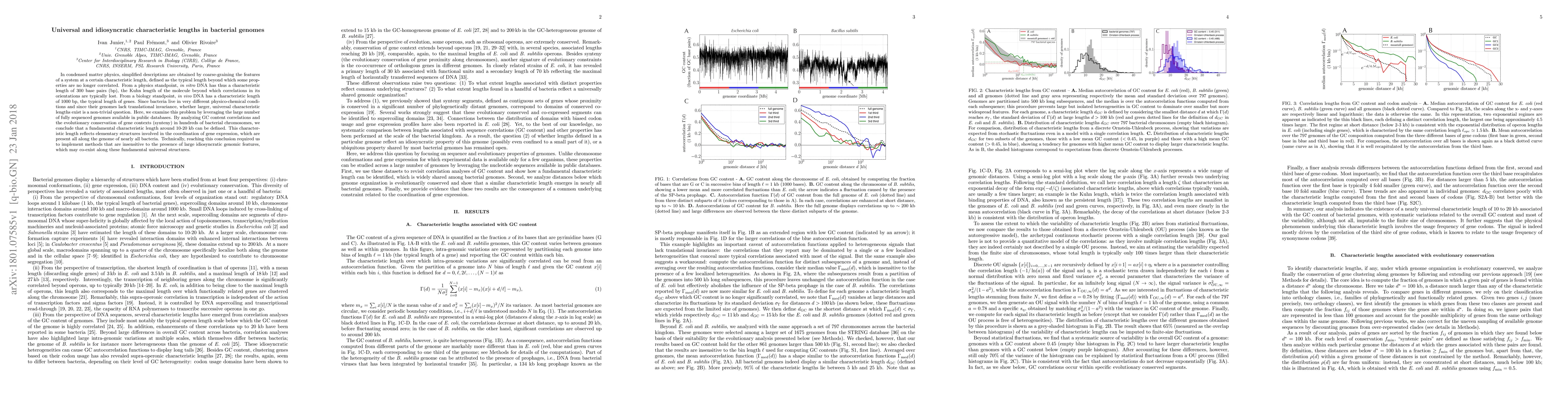 The study investigates characteristic lengths in bacterial genomes, identifying a fundamental length of approximately 10-20 kb that reflects universal structures coordinating gene expression across diverse bacteria, while accounting for large idiosyncratic genomic features. This conclusion is derived from analyzing GC content correlations and evolutionary conservation of gene contexts.