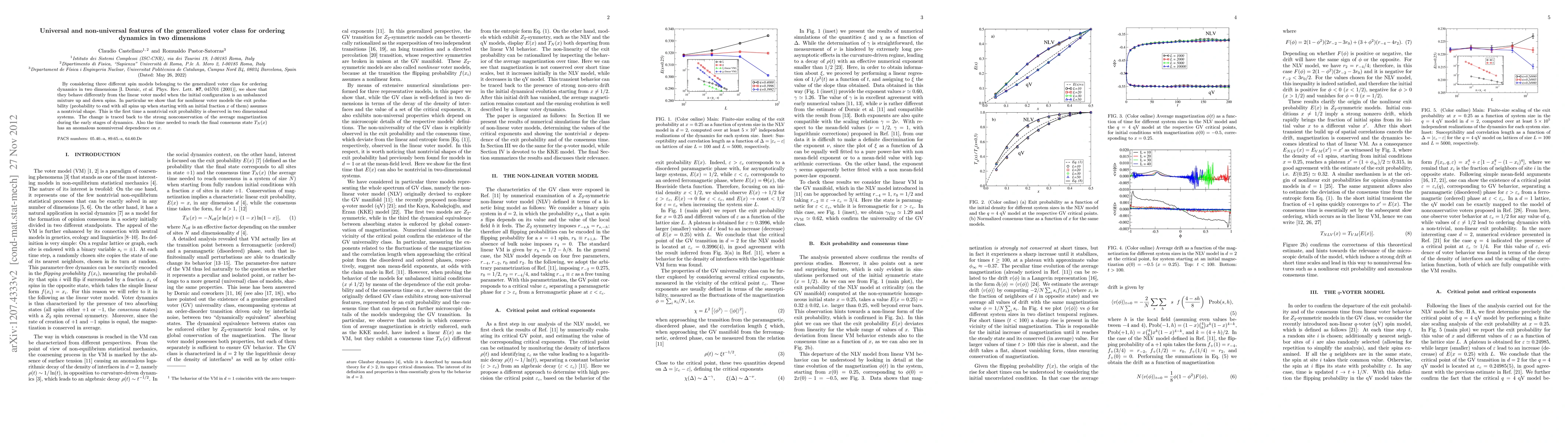 By considering three different spin models belonging to the generalized voter class for ordering dynamics in two dimensions [I. Dornic, \textit{et al.} Phys. Rev. Lett. \textbf{87}, 045701 (2001)], we show that they behave differently from the linear voter model when the initial configuration is an unbalanced mixture up and down spins. In particular we show that for nonlinear voter models the exit probability (probability to end with all spins up when starting with an initial fraction $x$ of them) assumes a nontrivial shape. The change is traced back to the strong nonconservation of the average magnetization during the early stages of dynamics. Also the time needed to reach the final consensus state $T_N(x)$ has an anomalous nonuniversal dependence on $x$.