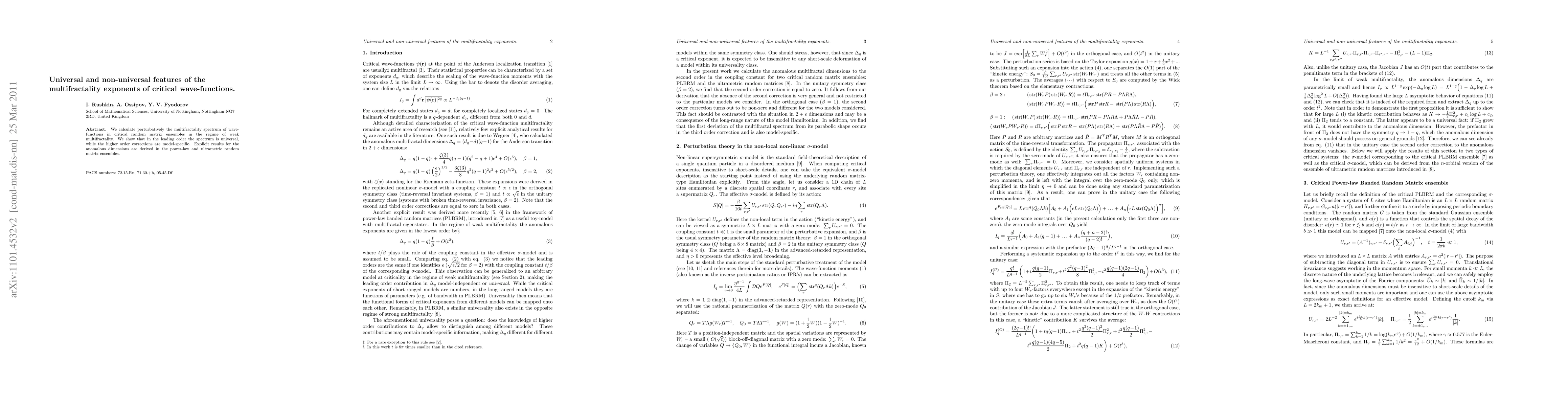 This paper investigates the multifractality spectrum of critical wave-functions in random matrix ensembles, revealing universal leading-order behavior and model-specific higher-order corrections. Explicit calculations for anomalous dimensions are provided for power-law and ultrametric ensembles.
