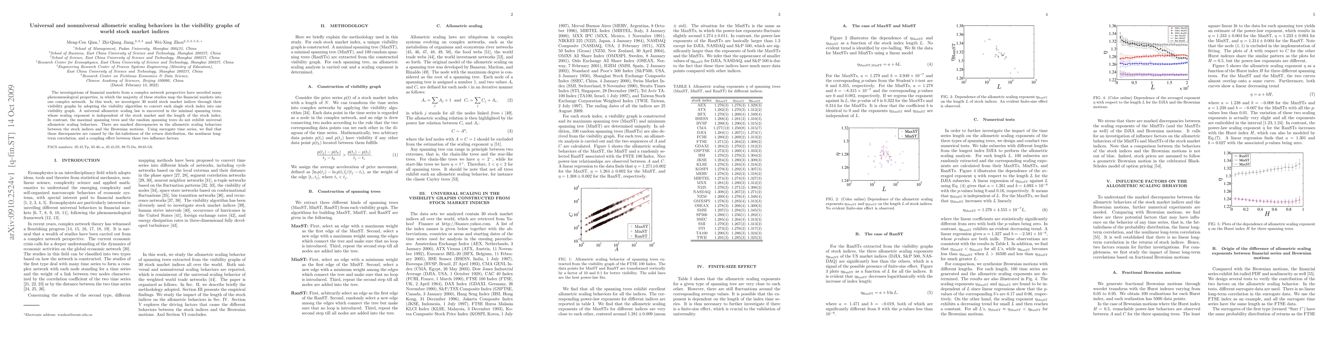 Researchers analyzed 30 world stock market indices to find a universal allometric scaling law in their visibility graphs, while finding discrepancies with Brownian motions due to fat-tailed returns and nonlinear correlation.