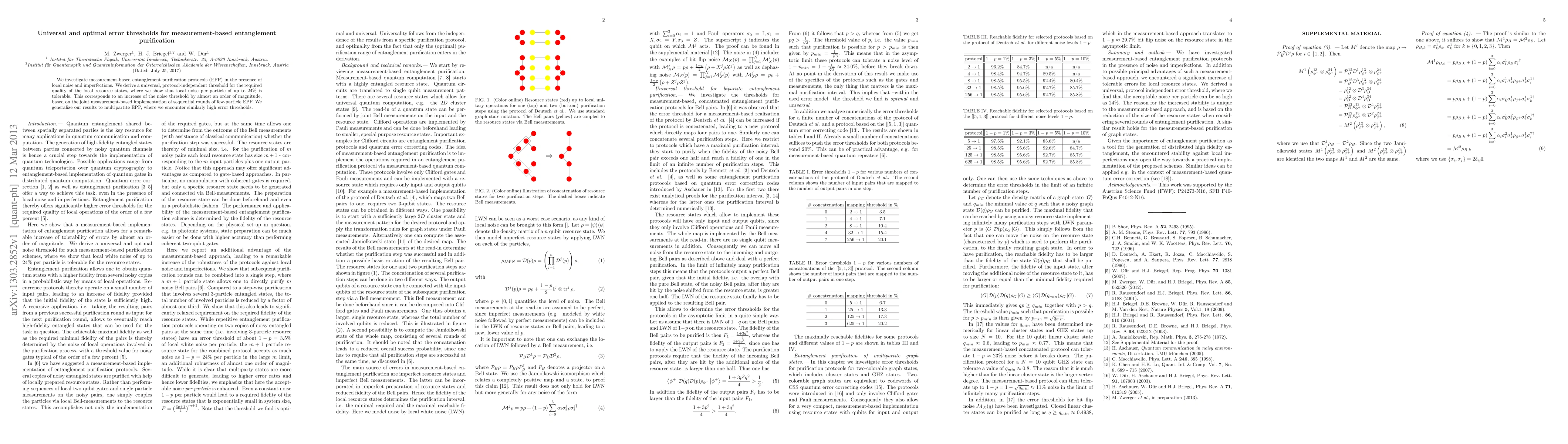 We investigate measurement-based entanglement purification protocols (EPP) in the presence of local noise and imperfections. We derive a universal, protocol-independent threshold for the required quality of the local resource states, where we show that local noise per particle of up to 24% is tolerable. This corresponds to an increase of the noise threshold by almost an order of magnitude, based on the joint measurement-based implementation of sequential rounds of few-particle EPP. We generalize our results to multipartite EPP, where we encounter similarly high error thresholds.