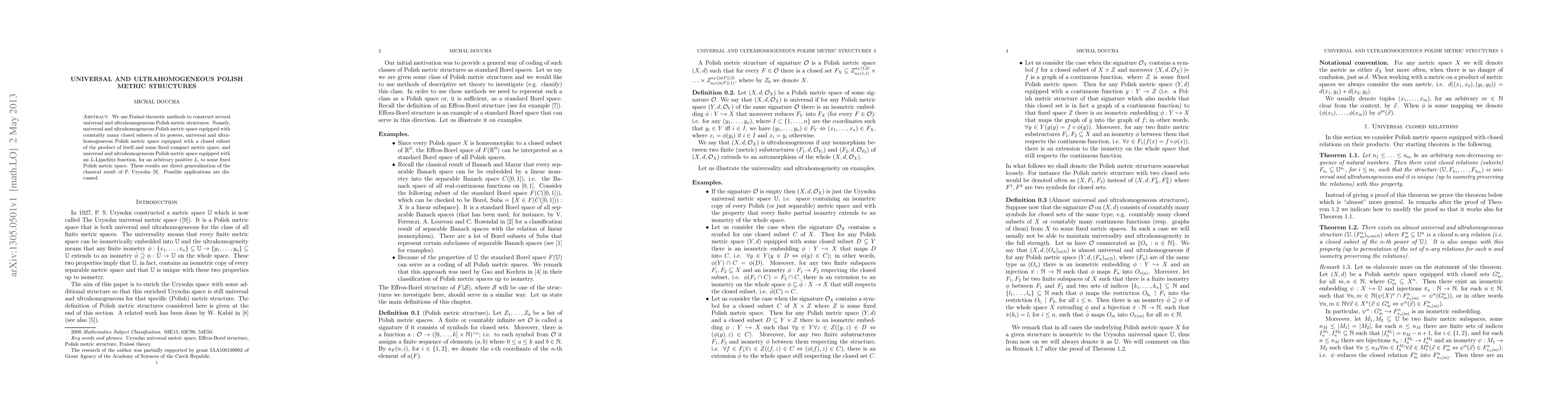 This paper utilizes Fraissé theory to create various universal and ultrahomogeneous Polish metric structures, including spaces with countably many closed subsets, closed subsets of their products with fixed compact metric spaces, and L-Lipschitz functions. These findings extend the classical result by P. Urysohn and discuss potential applications.
