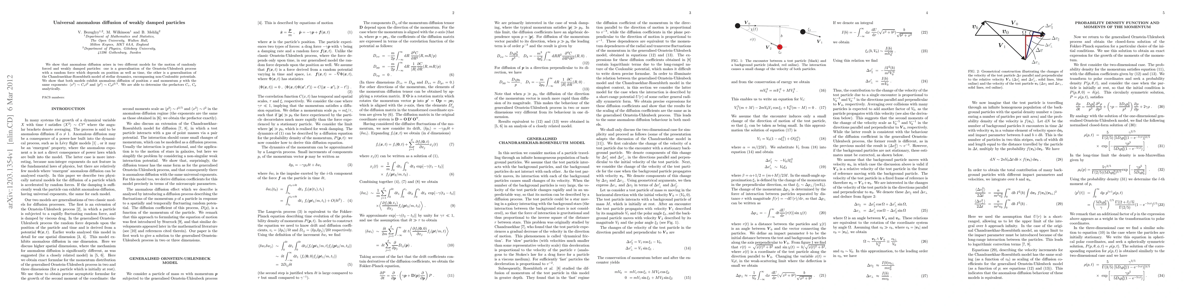 motion of randomly forced and weakly damped particles: one is a generalisation
