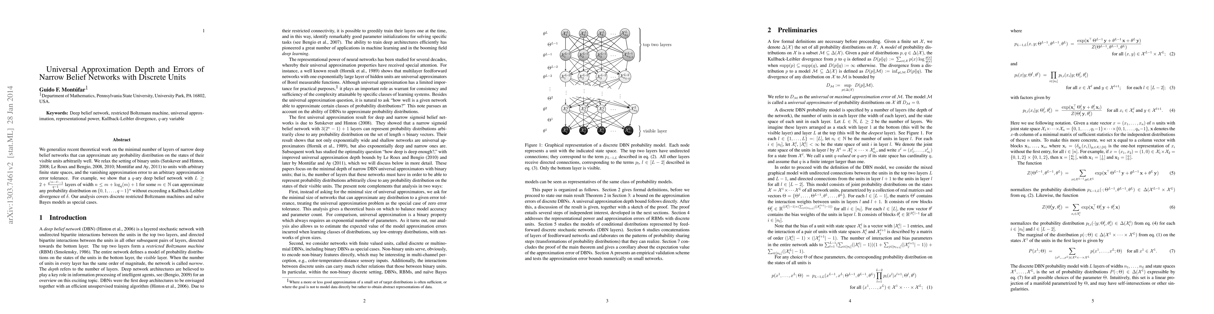 We generalize recent theoretical work on the minimal number of layers of narrow deep belief networks that can approximate any probability distribution on the states of their visible units arbitrarily well. We relax the setting of binary units (Sutskever and Hinton, 2008; Le Roux and Bengio, 2008, 2010; Mont\'ufar and Ay, 2011) to units with arbitrary finite state spaces, and the vanishing approximation error to an arbitrary approximation error tolerance. For example, we show that a $q$-ary deep belief network with $L\geq 2+\frac{q^{\lceil m-\delta \rceil}-1}{q-1}$ layers of width $n \leq m + \log_q(m) + 1$ for some $m\in \mathbb{N}$ can approximate any probability distribution on $\{0,1,\ldots,q-1\}^n$ without exceeding a Kullback-Leibler divergence of $\delta$. Our analysis covers discrete restricted Boltzmann machines and na\"ive Bayes models as special cases.