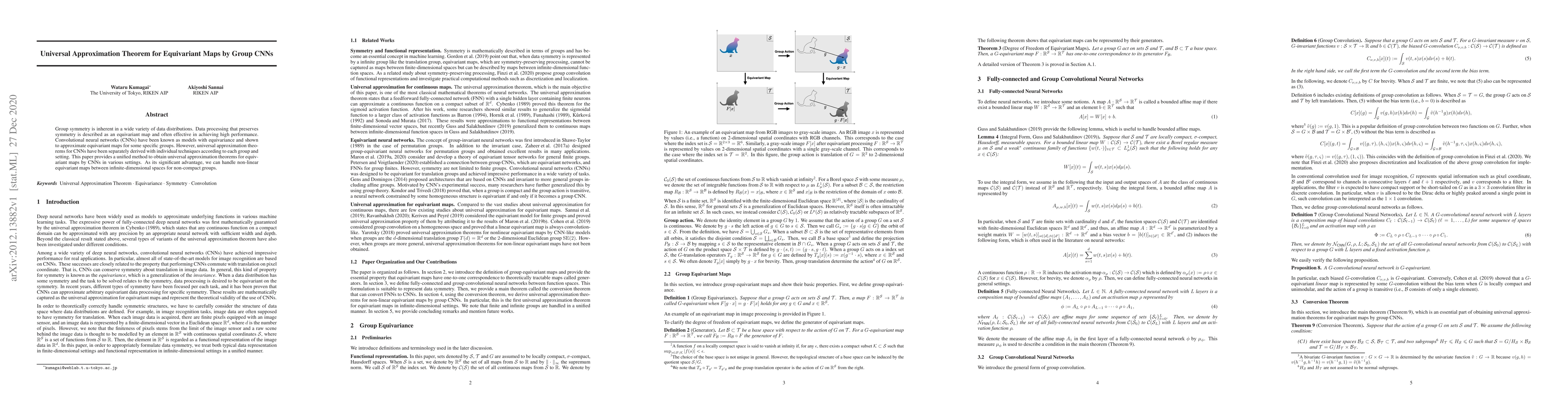 This paper proposes a unified method for obtaining universal approximation theorems for equivariant maps using convolutional neural networks (CNNs), applicable across various settings and capable of handling non-linear equivariant maps between infinite-dimensional spaces for non-compact groups.