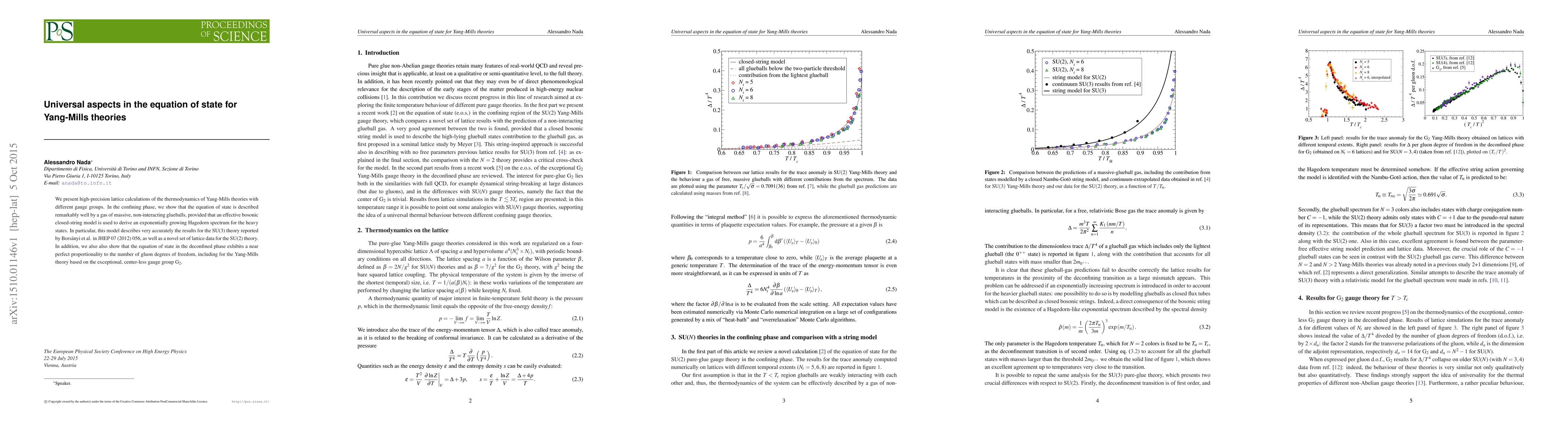 We present high-precision lattice calculations of the thermodynamics of Yang-Mills theories with different gauge groups. In the confining phase, we show that the equation of state is described remarkably well by a gas of massive, non-interacting glueballs, provided that an effective bosonic closed-string model is used to derive an exponentially growing Hagedorn spectrum for the heavy states. In particular, this model describes very accurately the results for the SU(3) theory reported by Bors\'anyi et al. in JHEP 07 (2012) 056, as well as a novel set of lattice data for the SU(2) theory. In addition, we also also show that the equation of state in the deconfined phase exhibits a near perfect proportionality to the number of gluon degrees of freedom, including for the Yang-Mills theory based on the exceptional, center-less gauge group $G_2$.