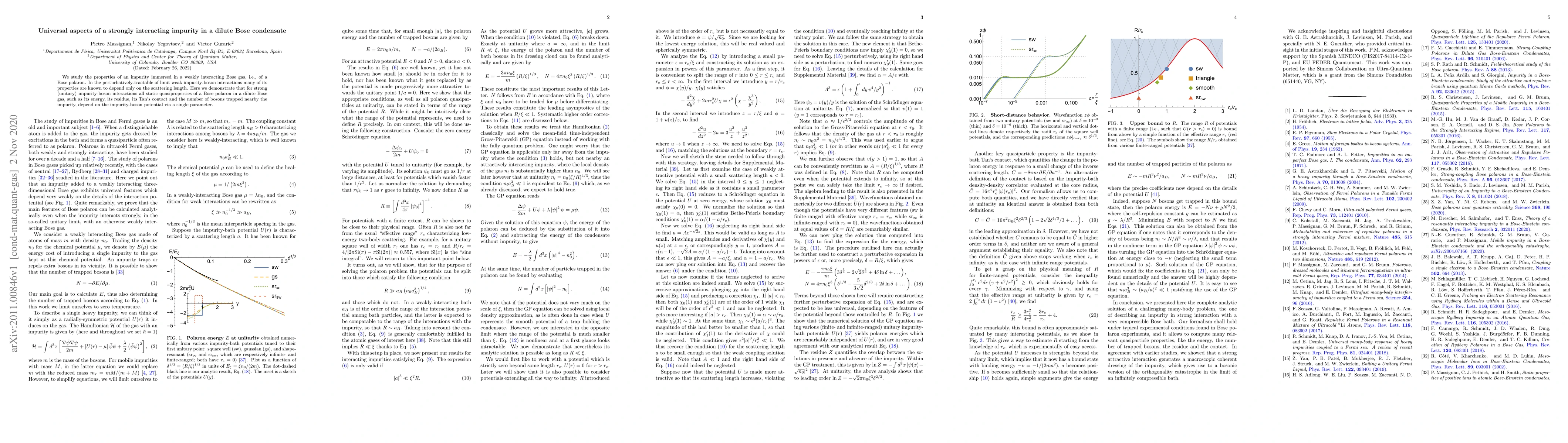 We study the properties of an impurity immersed in a weakly interacting Bose gas, i.e., of a Bose polaron. In the perturbatively-tractable of limit weak impurity-boson interactions many of its properties are known to depend only on the scattering length. Here we demonstrate that for strong (unitary) impurity-boson interactions all static quasiproperties of a Bose polaron in a dilute Bose gas, such as its energy, its residue, its Tan's contact and the number of bosons trapped nearby the impurity, depend on the impurity-boson potential via a single parameter.