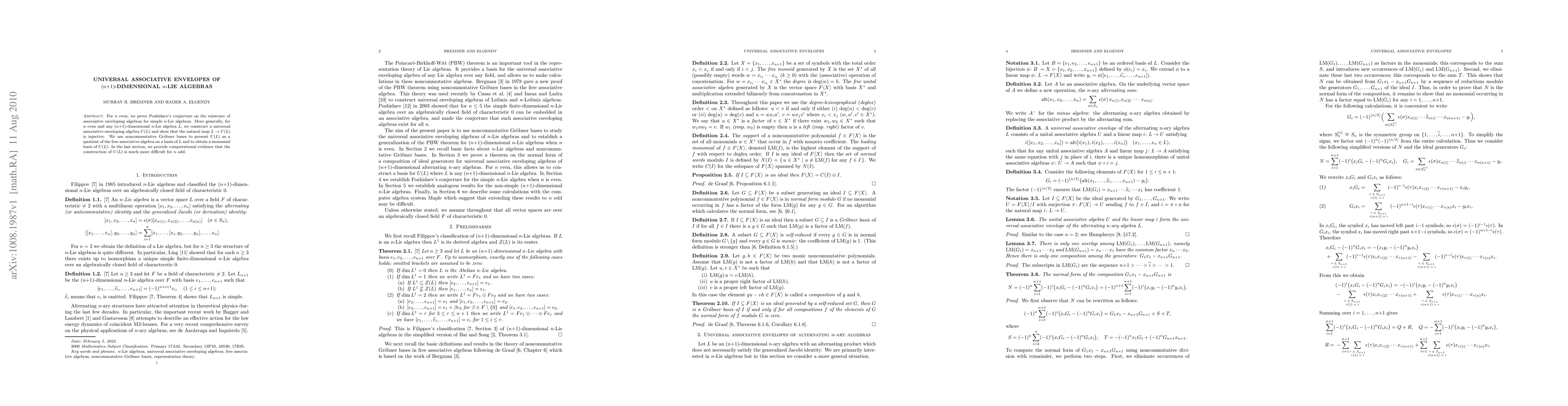 The paper proves Pozhidaev's conjecture for even-dimensional n-Lie algebras, constructing a universal associative enveloping algebra and showing the injective map from the algebra to its envelope. Computational evidence suggests the construction is significantly harder for odd dimensions.