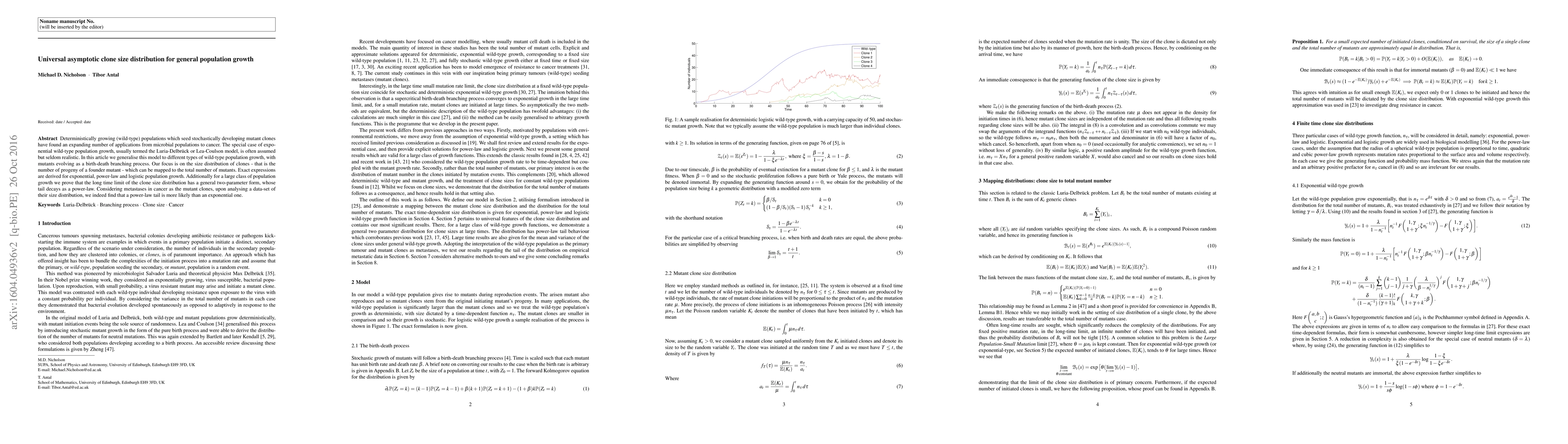 Deterministically growing (wild-type) populations which seed stochastically developing mutant clones have found an expanding number of applications from microbial populations to cancer. The special case of exponential wild-type population growth, usually termed the Luria-Delbr\"uck or Lea-Coulson model, is often assumed but seldom realistic. In this article we generalise this model to different types of wild-type population growth, with mutants evolving as a birth-death branching process. Our focus is on the size distribution of clones - that is the number of progeny of a founder mutant - which can be mapped to the total number of mutants. Exact expressions are derived for exponential, power-law and logistic population growth. Additionally for a large class of population growth we prove that the long time limit of the clone size distribution has a general two-parameter form, whose tail decays as a power-law. Considering metastases in cancer as the mutant clones, upon analysing a data-set of their size distribution, we indeed find that a power-law tail is more likely than an exponential one.