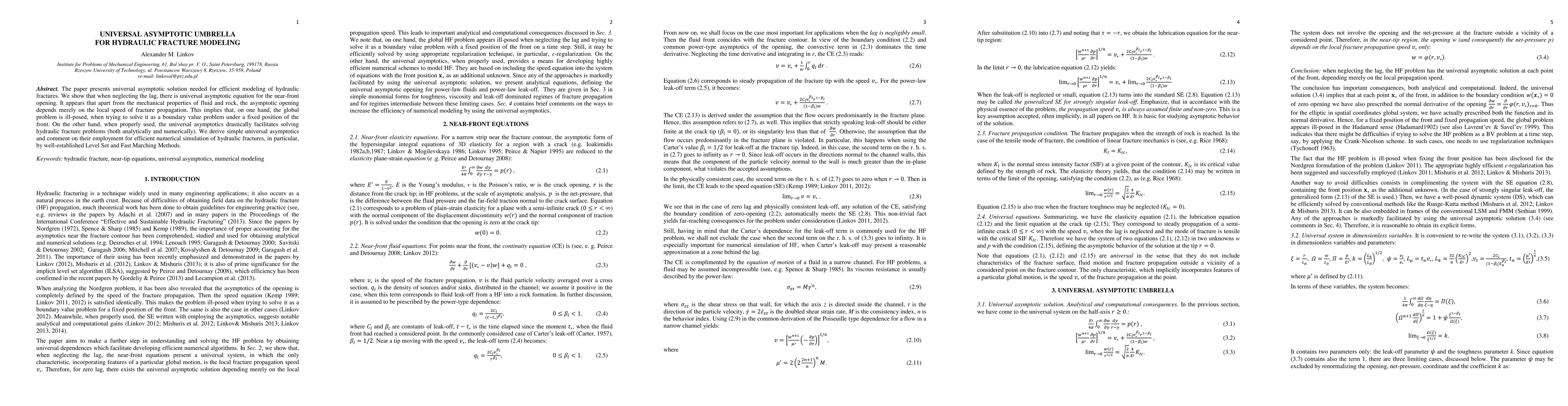 This paper introduces a universal asymptotic solution for hydraulic fracture modeling, demonstrating that the near-front opening depends primarily on the local speed of fracture propagation rather than mechanical properties. This approach simplifies both analytical and numerical solutions, particularly when using Level Set and Fast Marching Methods.